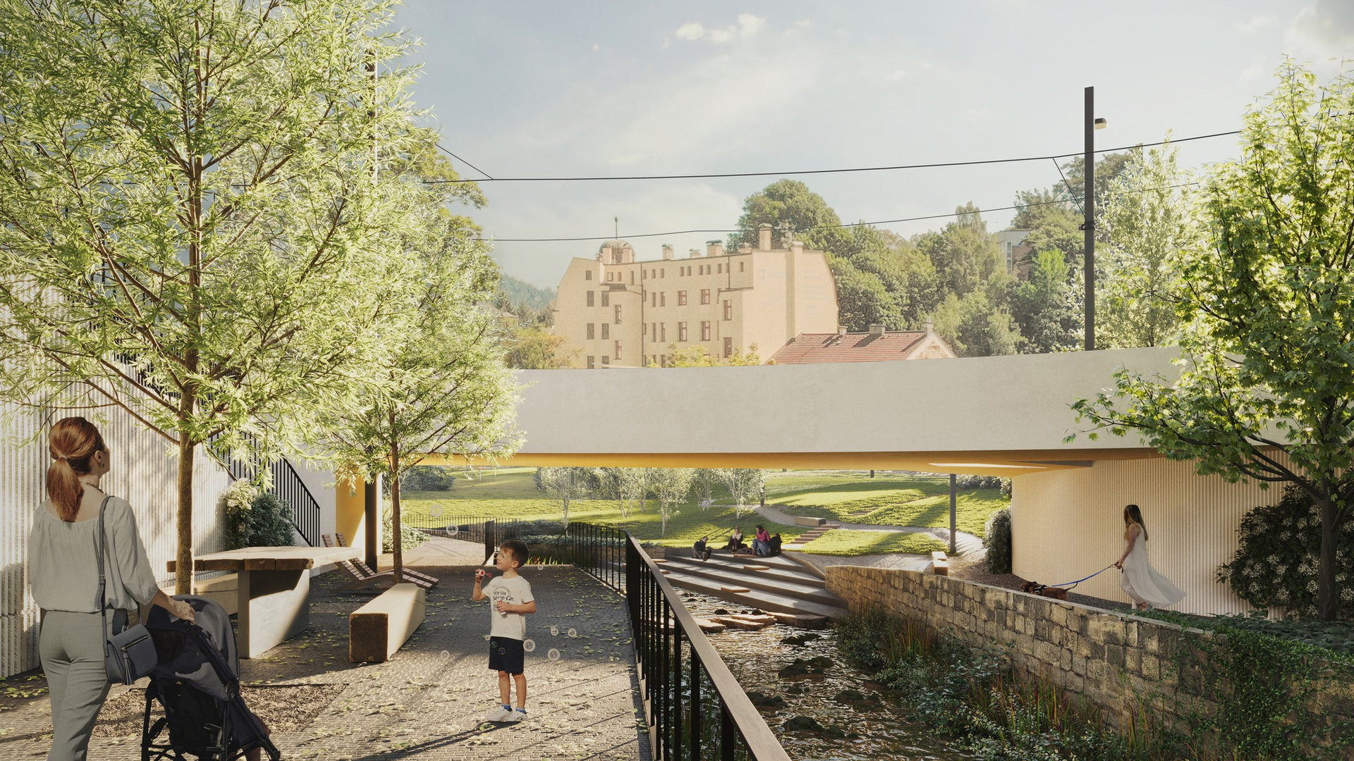 Zároveň má dojít k revitalizaci celého souvisejícího městského bloku a zlepšení přístupu k řece - Lužická Nisa by měla být na pravém břehu přístupná formou náplavky, na levém břehu má vzniknout park s pobytovými schody až k vodě. Kromě úpravy zeleně dojde také k dovybavení venkovním i vnitřním mobiliářem.
