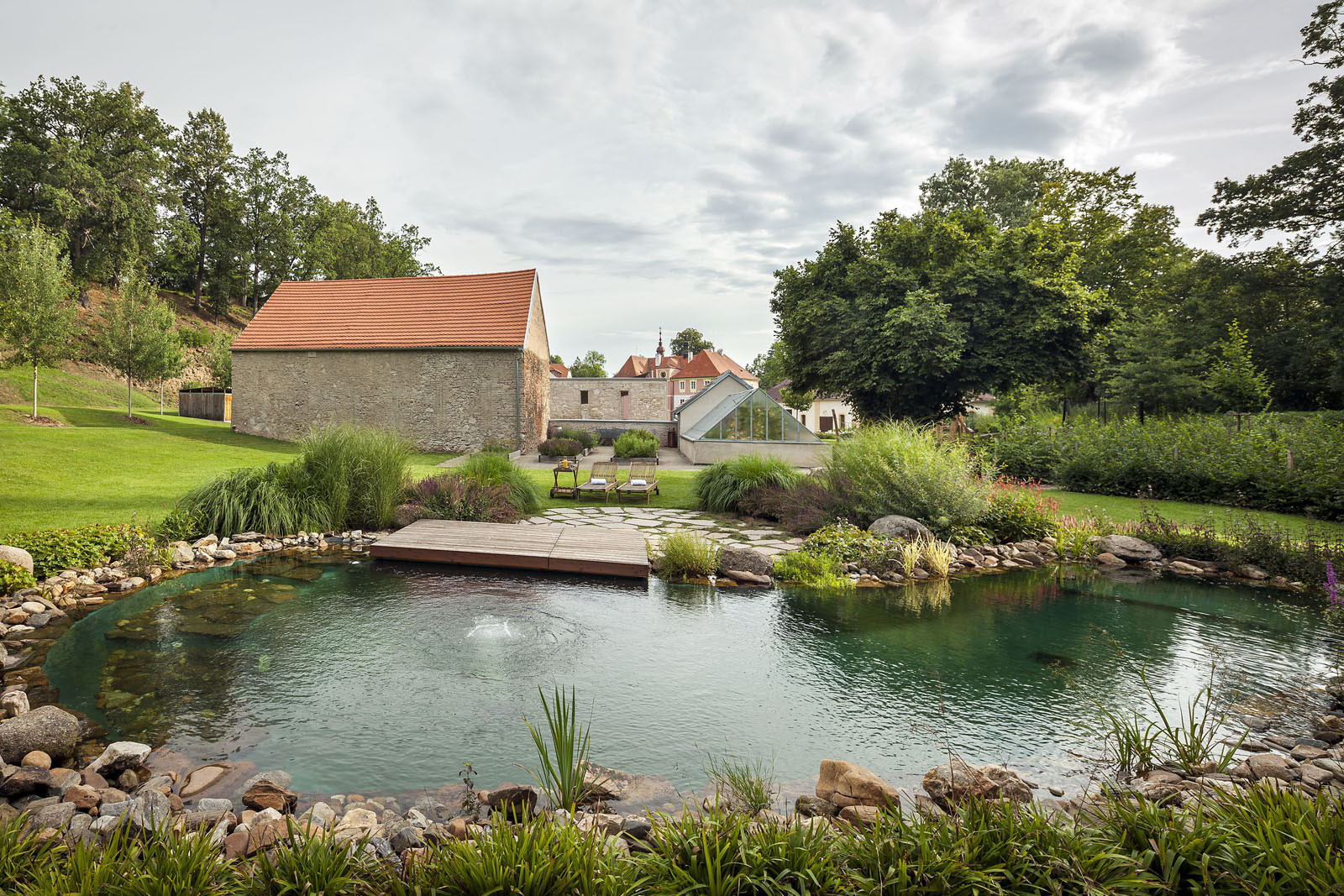 Převážná část areálu se nachází v nivě řeky Lužnice, takže se zde architekti museli vypořádat s vysokou hladinou spodní vody. „Vysázelo se zde na padesát nových stromů a víc jak osm tisíc rostlin. Vybudovala se nová cestní síť, která vede naše kroky i pohledy. Travnaté plochy vyzývají k pikniku, vytipovala se místa s nejhezčím výhledem na zámek a sem se pod koruny stromů umístila ambientní posezení. Kuchyňská zahrada byla doplněna o krásný skleník a vyvýšené záhonky s bylinkami. Přibyly i nenápadné atrakce pro děti, které rozvíjí dětskou představivost. Na skále vedle zámku se nachází sad, odkud si užijete překrásný výhled na celý areál i blízkou řeku. V roce 2019 jsme do parku dodělávali i přírodní koupací jezírko," vypočítává Ferdinand Leffler. Park funguje přirozeně a díky dobrému konceptu nepotřebuje náročnou údržbu. V současnosti se o něj stará pouze jedna osoba.