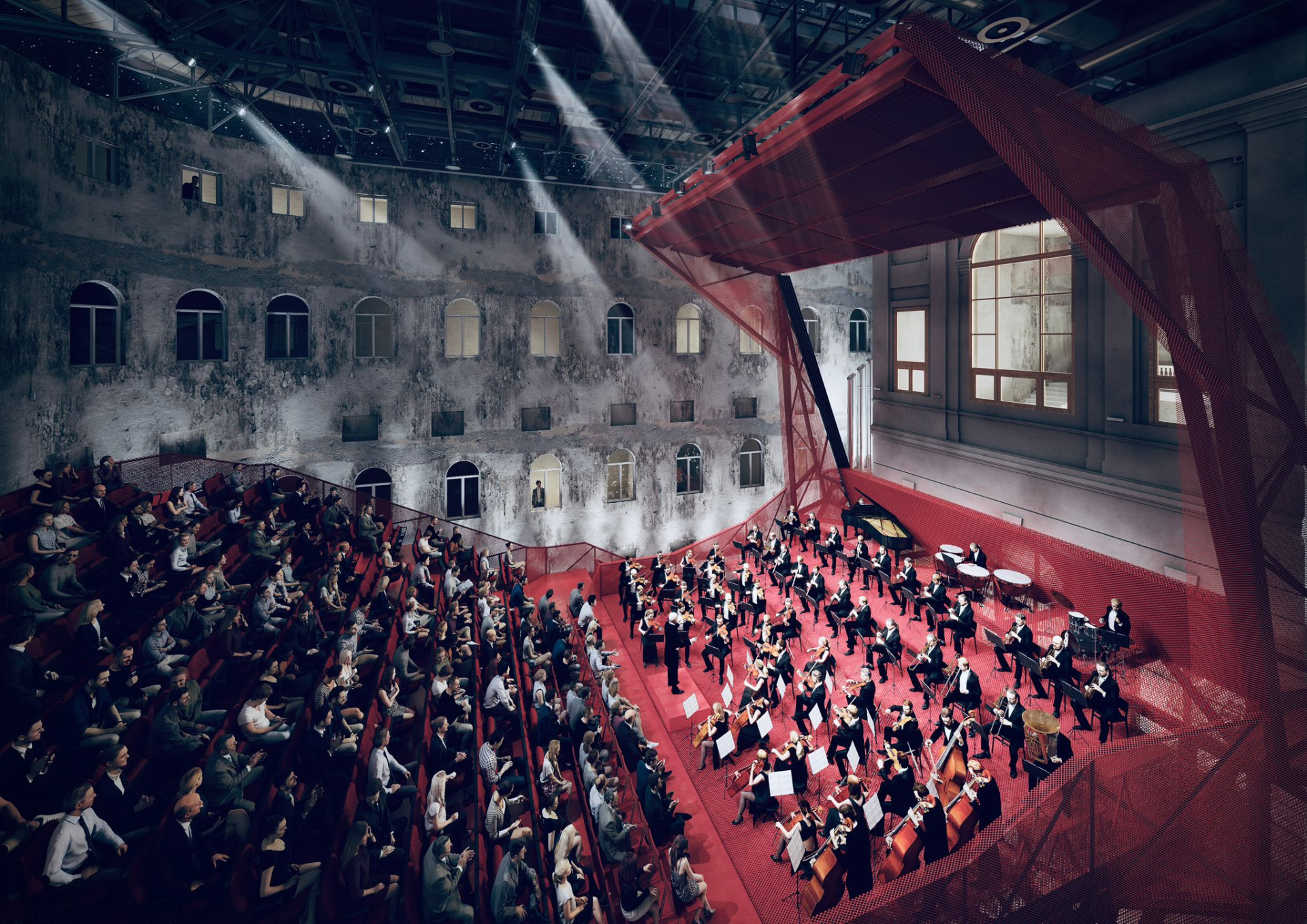 Červená barva rovněž není zvolená náhodně, ale má podnítit emoce a připravit lidi na silný zážitek. Ten by se měl poprvé dostavit dnes večer a pak i v dalších dnech, kdy budou probíhat reprízy zahajovacího programu; 15.6 bude možné vidět i přímý přenos v České televizi. Měl by to být zážitek z hudby, ale také z nové architektury – podobnou současnou intervenci do staré architektury Karlovy Vary zatím nezažily.