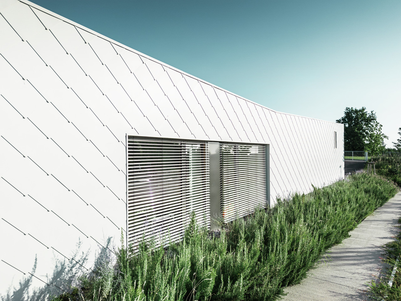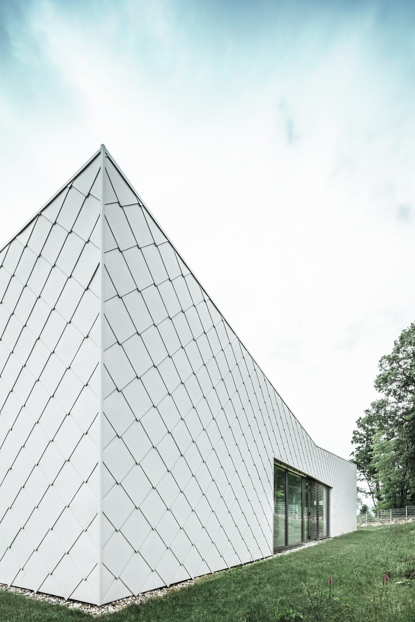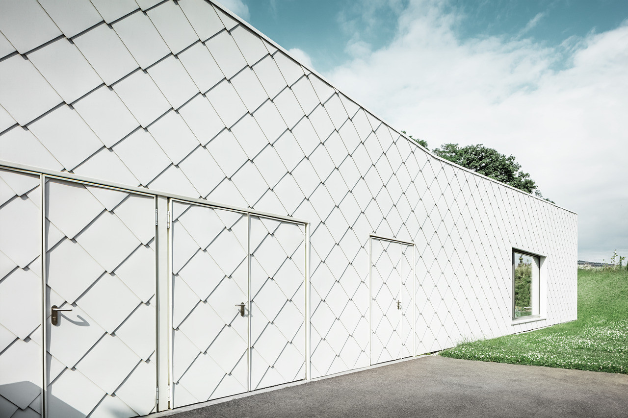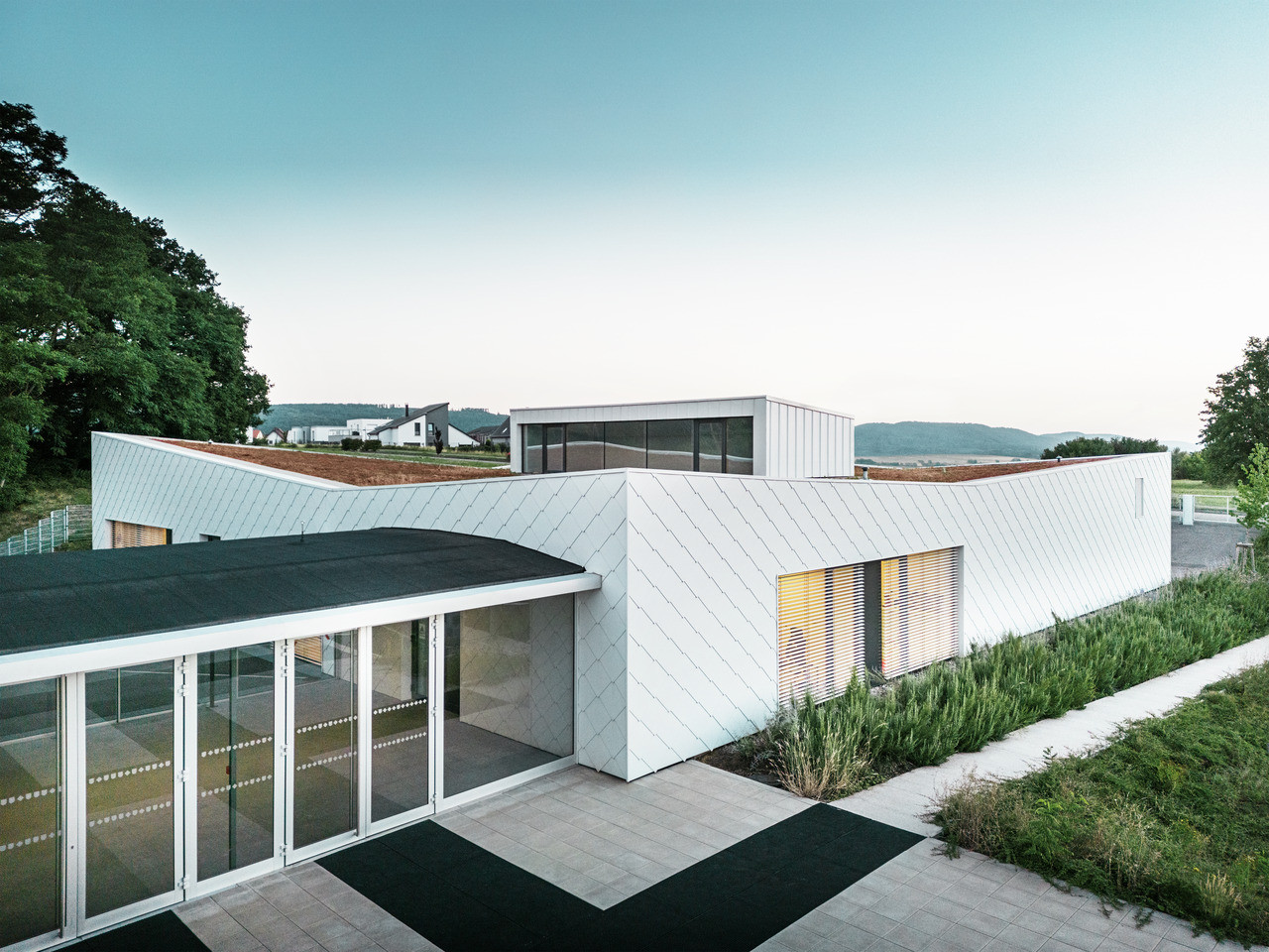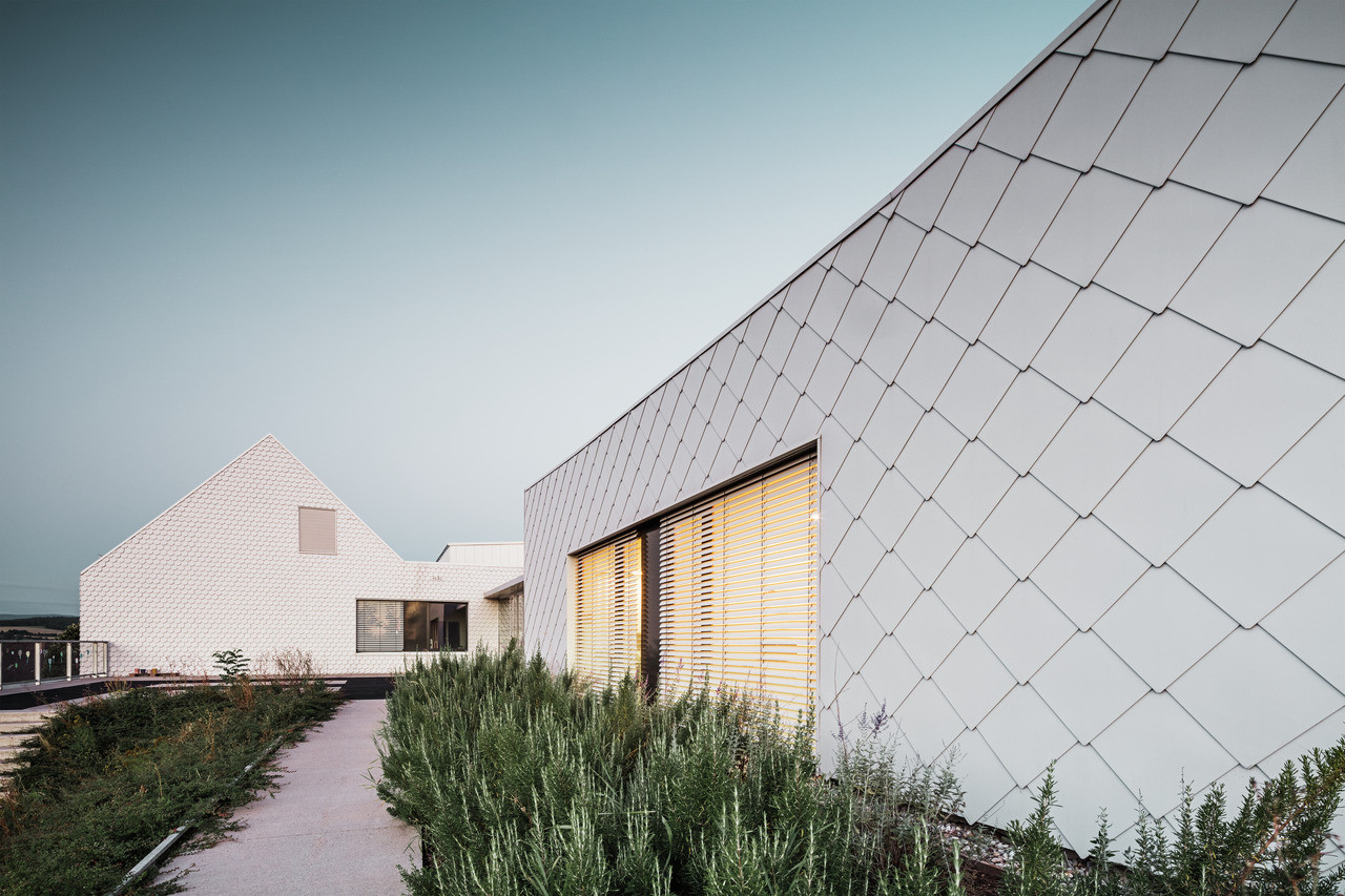 Jasně bílá, pragmaticky jasná. Nová školní družina zaujme zářivou šupinovitou fasádou z hliníku