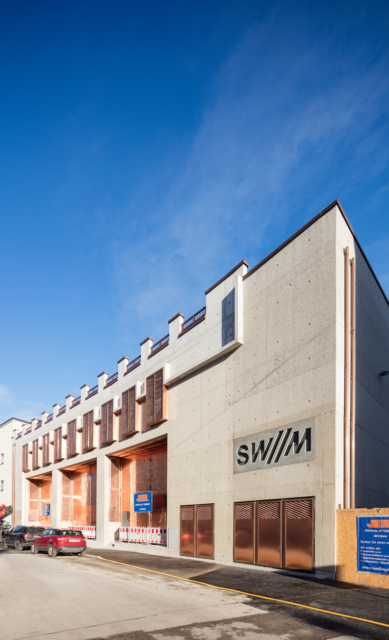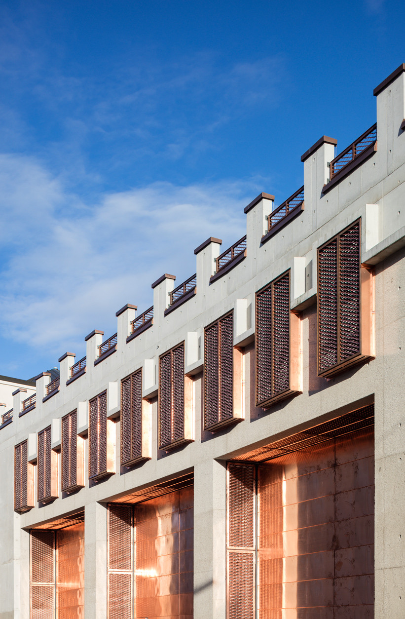 Právě tato materiálová strohost udává celkový výraz objektu a každému kolemjdoucímu na první pohled jasně naznačí, jaký je účel budovy. Zatímco beton představuje základní konstrukční materiál většiny moderních technických staveb, měď pak díky svým jedinečným vodivým vlastnostem přímo odkazuje na elektřinu. Zářivá měď navíc spolu s robustní betonovou konstrukcí představuje kontrastní dvojici, díky níž objekt získal nezaměnitelný výraz.
