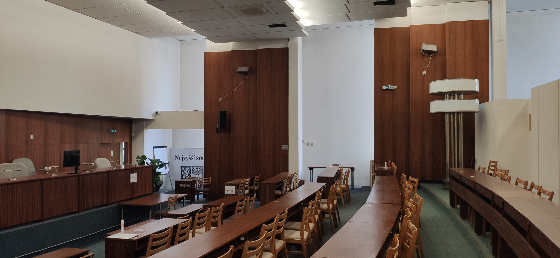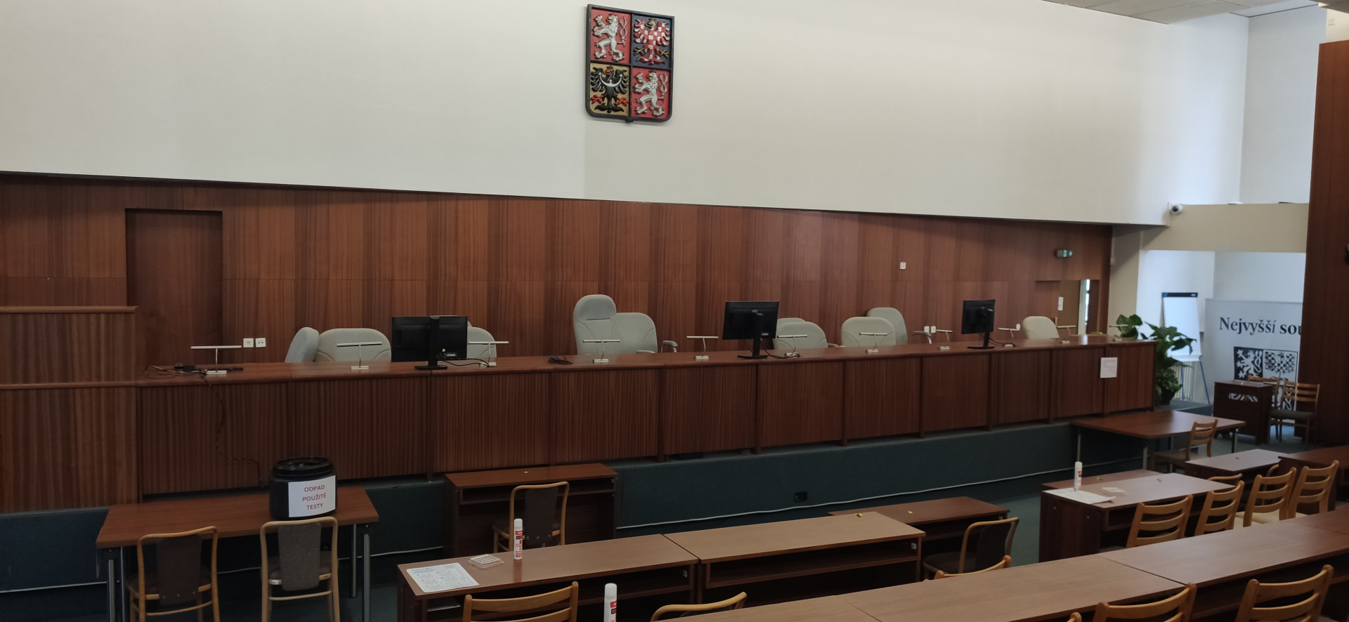 Jednací síň nejvyššího soudu prošla zevrubnou rekonstrukcí. Najdeme ji v památkově chráněné funkcionalistické budově v Brně
