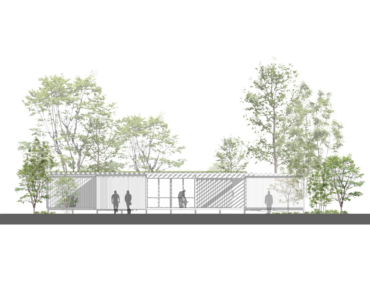Nejenže je dům kompletně zhotovený ze dřeva, ale vnitřní prostory plynule přecházejí do exteriéru prostřednictvím venkovní terasy, střechu zase pokrývají planě rostoucí rostliny. Zeleň navíc v budoucnu poslouží jako přirozené zastínění. Každý z jednotlivých kroků návrhu tak reaguje na maximální využití prostoru a současně zdůrazňuje kontakt s okolní přírodou.