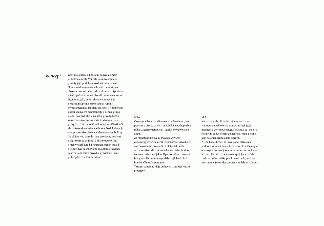 Čtrnáctý ročník „Ještědu“ dospěl do finále! To znamená, že představujeme nejlepší projekt, jehož autorkou je Michaela Říhová. Na následujících řádcích a obrázcích vám liberecká studentka ukáže, jak se jí podařilo architektonicky reagovat na text básně Williama Yeatse, což bylo také zadáním mezinárodní soutěže.