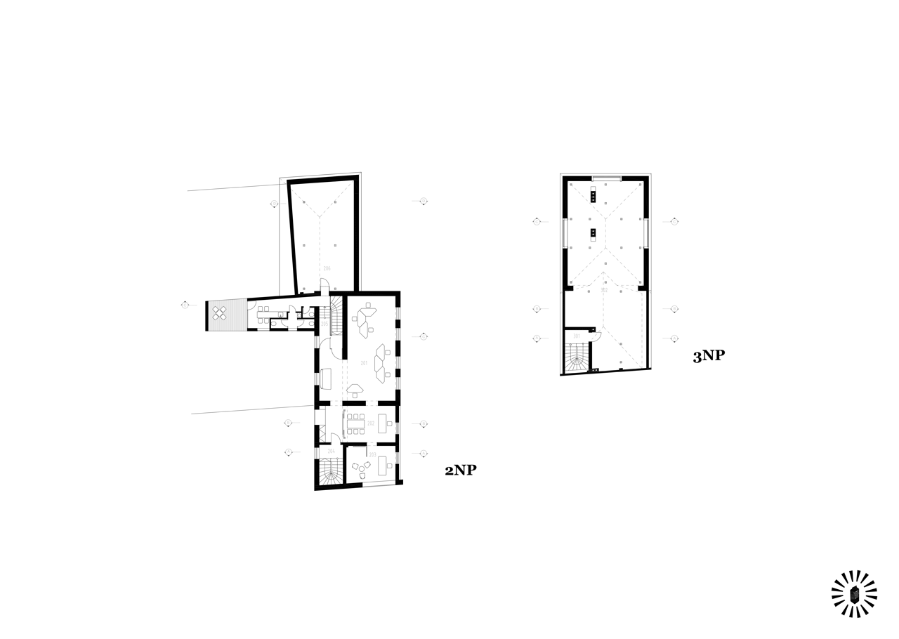 Mjölk architekti, Palmovka Jihlava / Rekonstrukce části průmyslového areálu Jihlavan, půdorysy 2. NP a 3. NP – foto