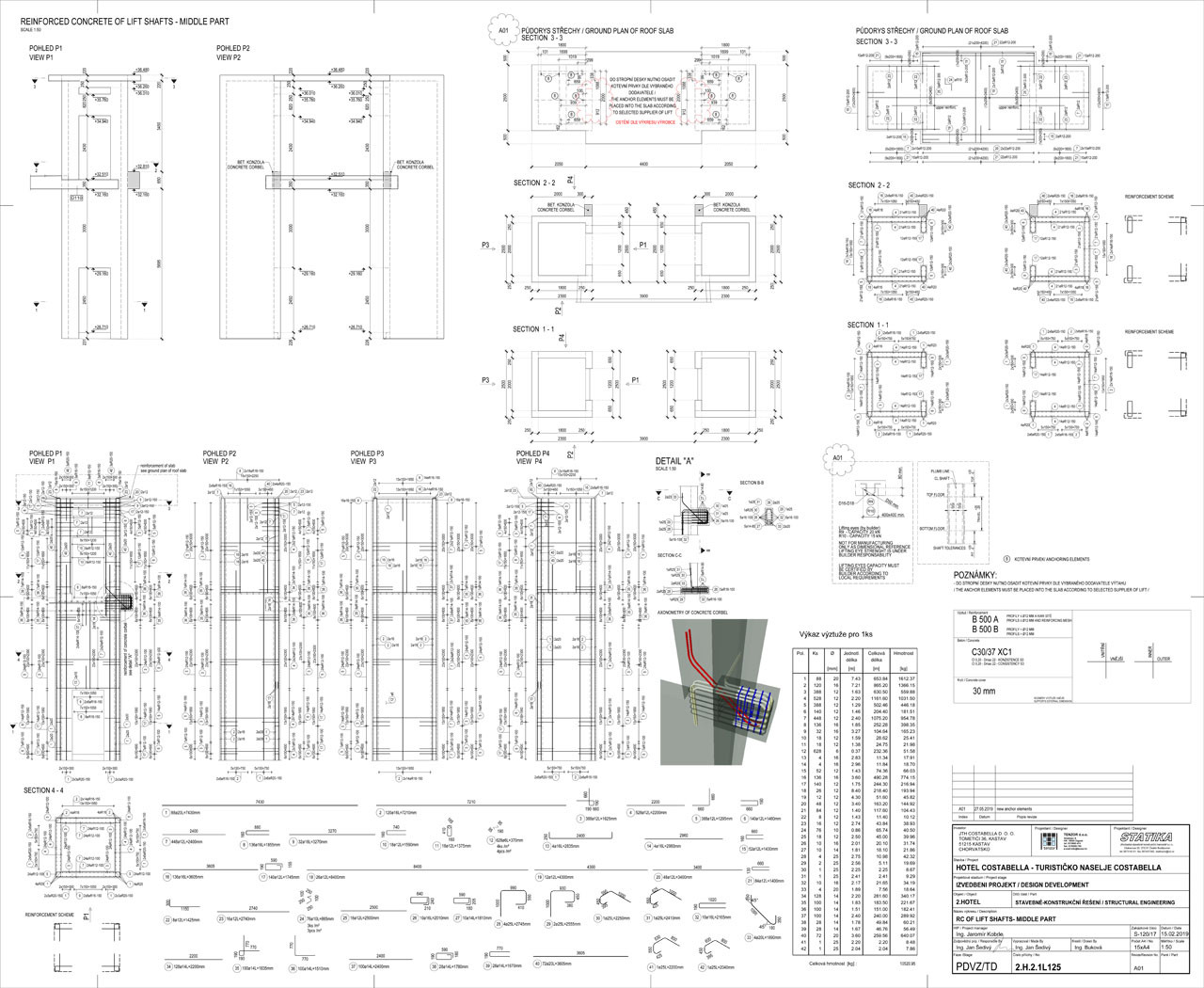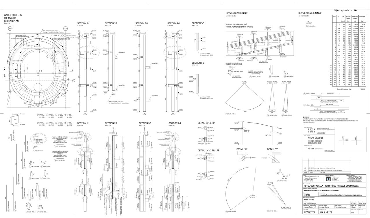 Zpracování 3D modelu jednotlivých objektů a výkresové dokumentace ve stupni prováděcí dokumentace včetně podrobného rozkreslení výztuže řešili projektanti v rámci programu Allplan Engineering. Výpočty pak byly prováděny v programu SCIA Engineer.