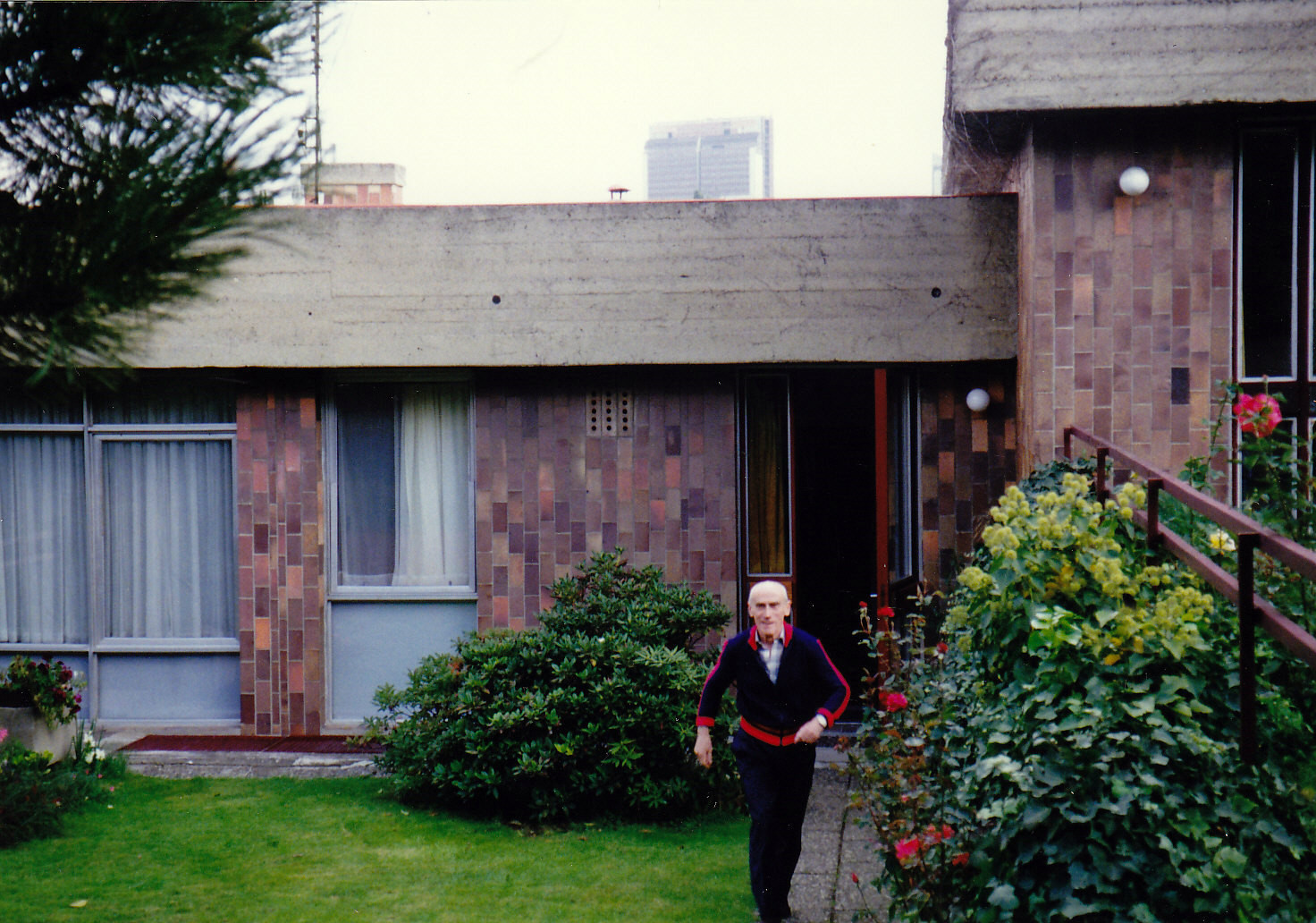 Betonový plot měl výšku těsně nad očima kolemjdoucích. Takovou vizuální bariéru bychom dnes nepochválili − ovšem jednotné provedení a červené branky jsou dobré pořád.