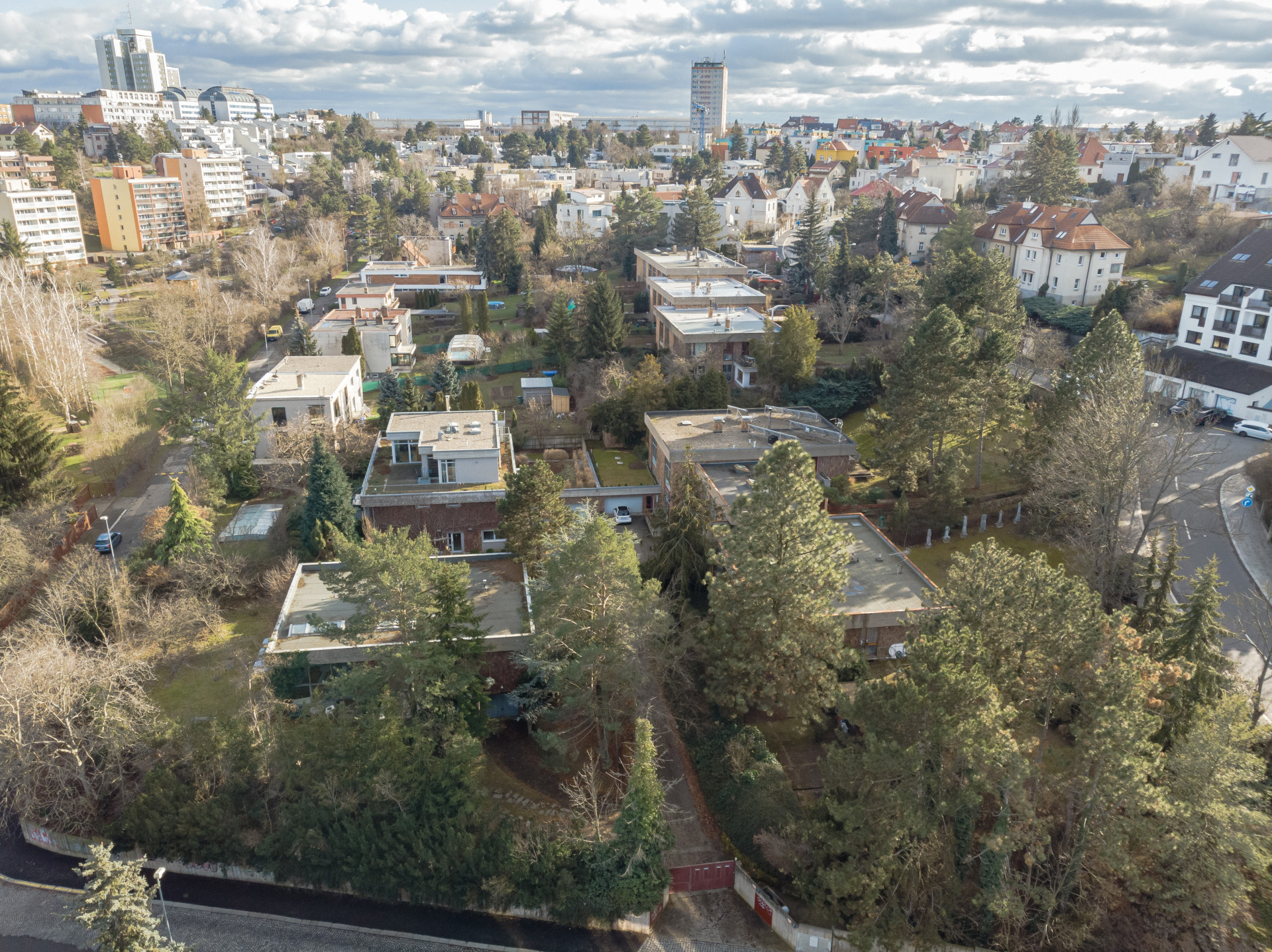 Vznikl promyšlený jednotný soubor. Zahrnuje čtyři vily a sedm řadových domů. Pozemek umělcům doporučil pravděpodobně Karel Prager osobně.