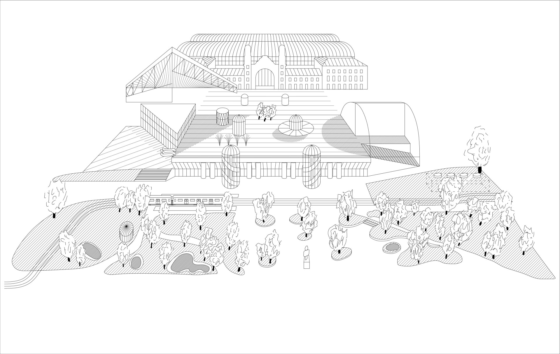 Snaha smířit intervenci infrastrukturní budovy ze 70. let do prostoru původního parku rozšířením její identity jako jakéhosi parkového skleníku byla od začátku vnímána jako perspektivní a legitimní koncept umožňující atraktivní ztvárnění.