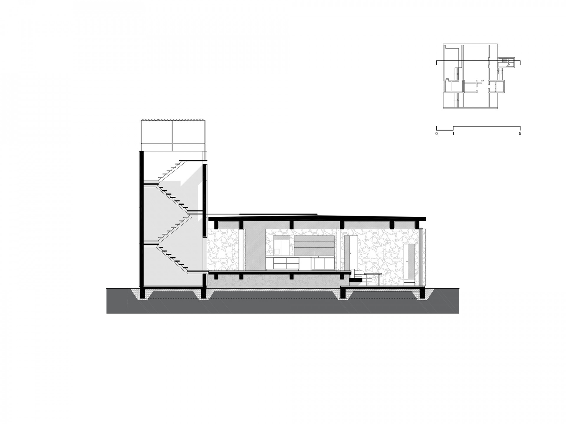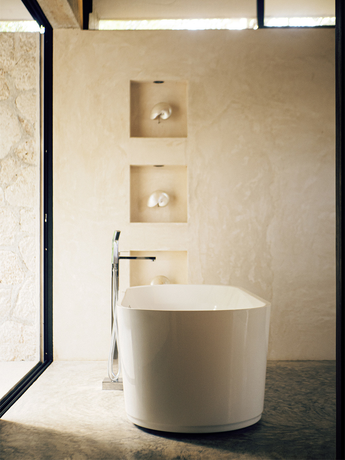 Vila je díky své konstrukci vyzdvižena nad úroveň terénu, takže pod ní neustále proudí mořský vzduch. „Stejný princip je použit i při konstrukci střechy, která je položena na pěti mohutných betonových trámech,“ přibližují architekti z ateliéru NOIZ.SK. S myšlenkou na vzdušnost jsou ostatně pojaty i interiéry založené na otevřených dispozicích.