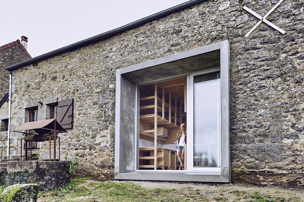 Pařížský architekt Frank Minnaërt zrekonstruoval starobylou kamennou stodolu v národním parku Morvan. Vzniklo tak unikátní letní sídlo respektující původní konstrukci venkovské stavby, kde tradiční kamenná fasáda kontrastuje s výrazným betonovým výklenkem. Studené materiály, jako je beton a kámen, naopak zjemňuje interiér obložený dřevem.