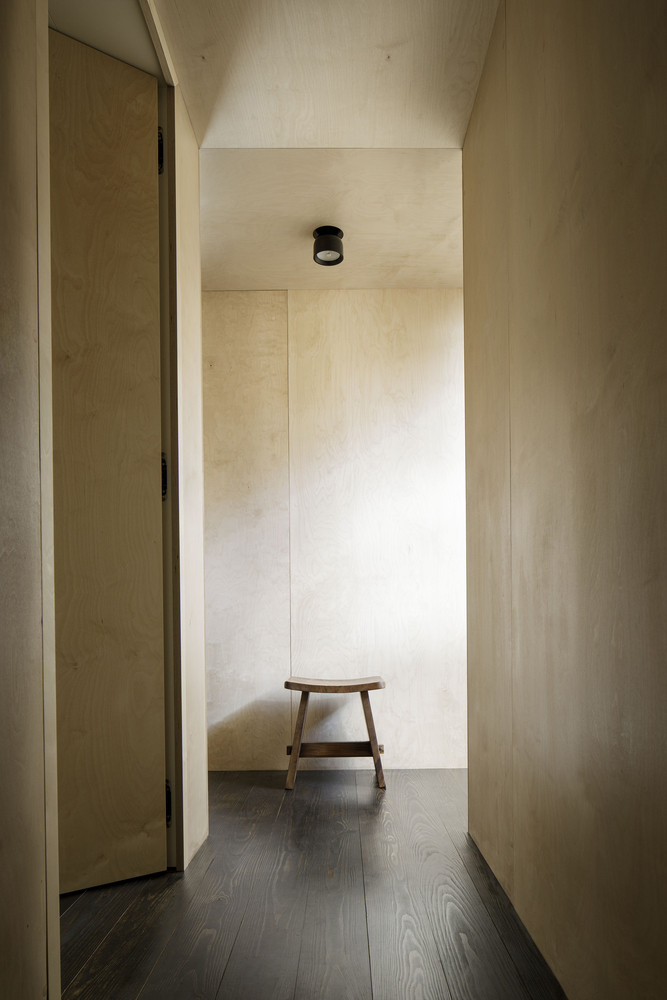 Součástí rekonstrukce je také dostavba rozšiřující interiér o obývací pokoj s volně stojícími kamny a zádveří. Od původního domu odlišili architekti tyto prostory pomocí podlahy z černé pryskyřice. Ostatní podlahy jsou pak z černě mořeného modřínového dřeva. Právě dřevo v interiéru převládá nad kamenem, díky čemuž působí velmi útulně.