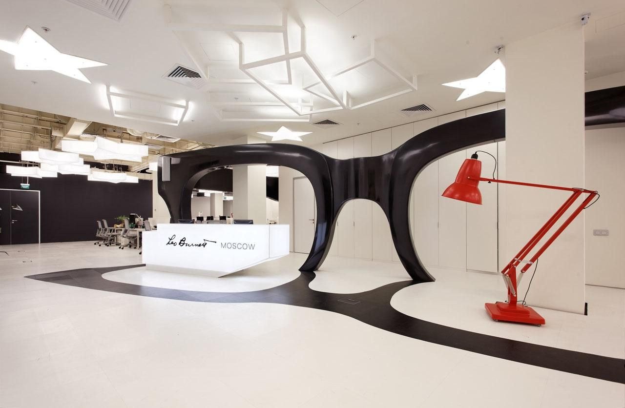 Interiér kanceláří moskevské pobočky reklamní agentury Leo Burnett navrhli architekti z Nefa Architects ve stylu moderních galerií. Industriální prostory, základní černo-bílá barevná kombinace s červenými akcenty vytváří moderní tvůrčí prostředí v korporátním duchu.