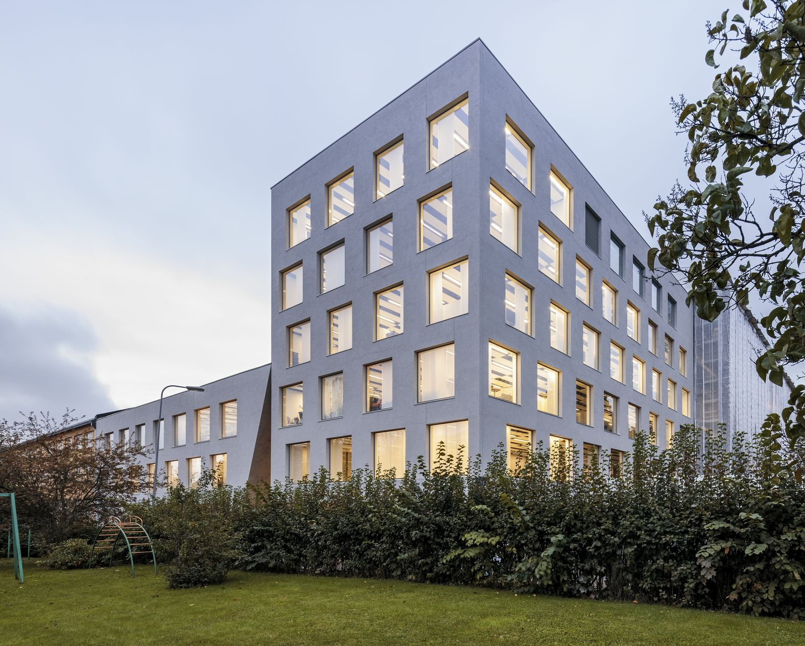 Nová kancelářská budova nahrazuje několik starších budov podél hranic pozemku, ale na druhou stranu nepřekračuje jejich původní výšku. Měřítko čtvrti tak zůstává zachováno. Nový kancelářský distrikt bude dokončen během letošního roku.