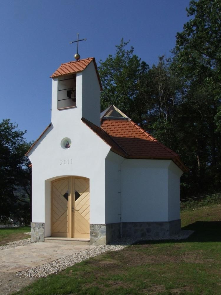 Kaple rustikálního charakteru na návrší pod horou Kleť