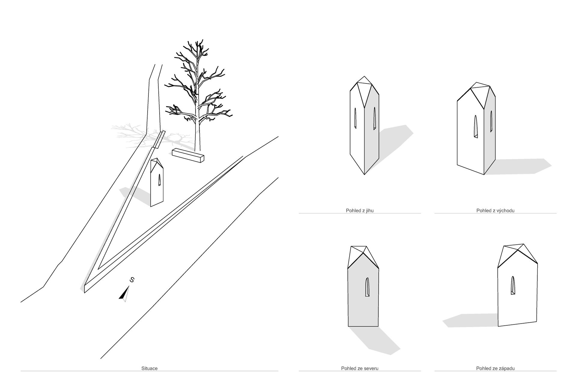 Dnes už zůstala cesta jen jedna, ale původní křížení se do novostavby podařilo otisknout. Kaple má půdorys nepravidelného trojúhelníku, jehož hrany odpovídají původnímu rozvětvení a směru cest. Architekti k tomu dodávají, že jejich cílem bylo „obnovit paměť krajiny“.