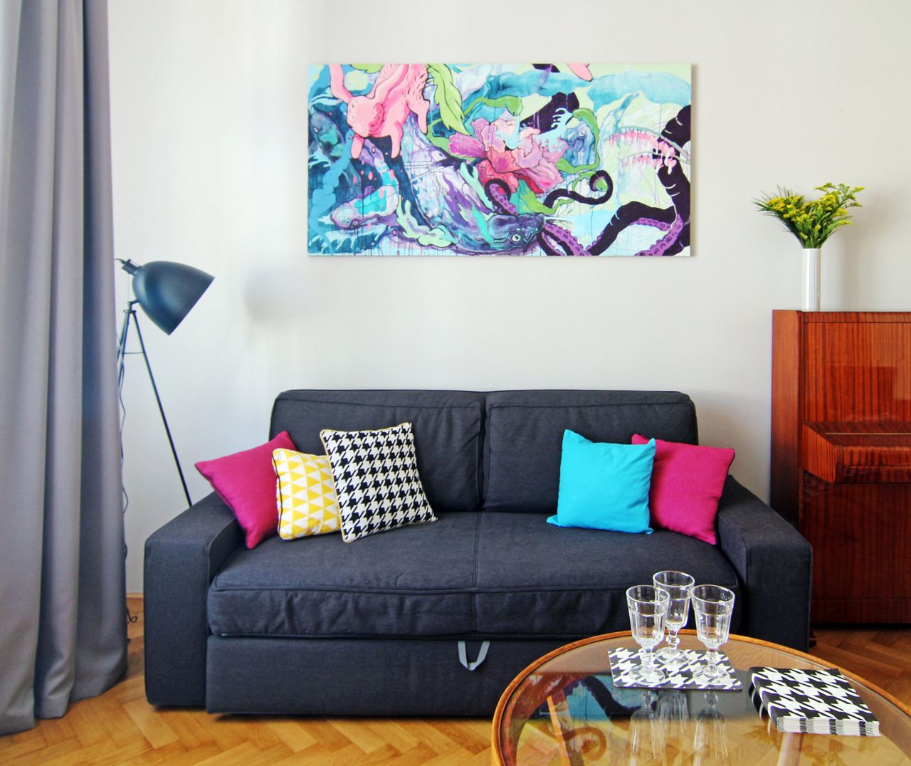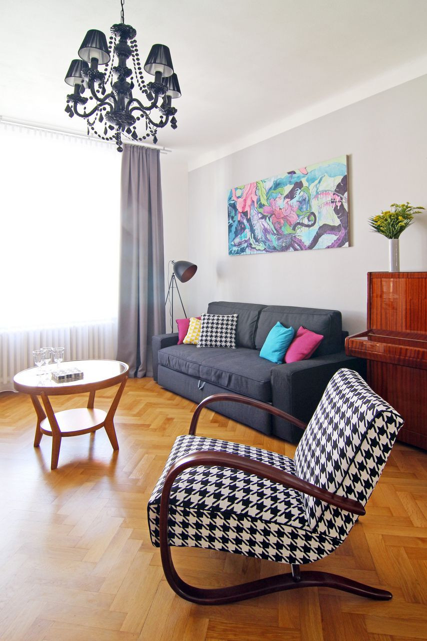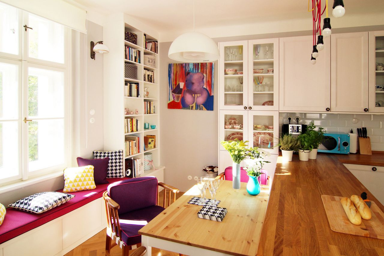 Byt na Žižkově hýří pestrými barvami, které jsou pečlivě namíchány z malířské palety autorů obrazů, zdobících stěny interiéru. Majitelé se s architektkou ze studia29 shodli, že pestré barvy soustředí převážně do bytových doplňku, zatímco interiér bude laděn do neutrální kompozice.