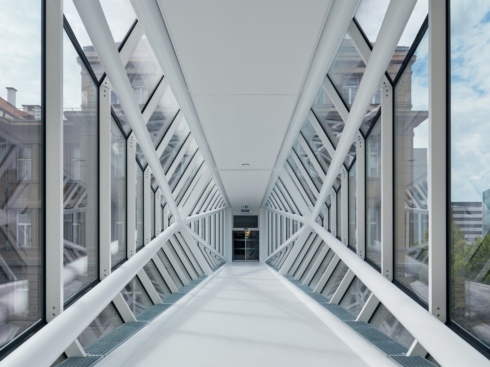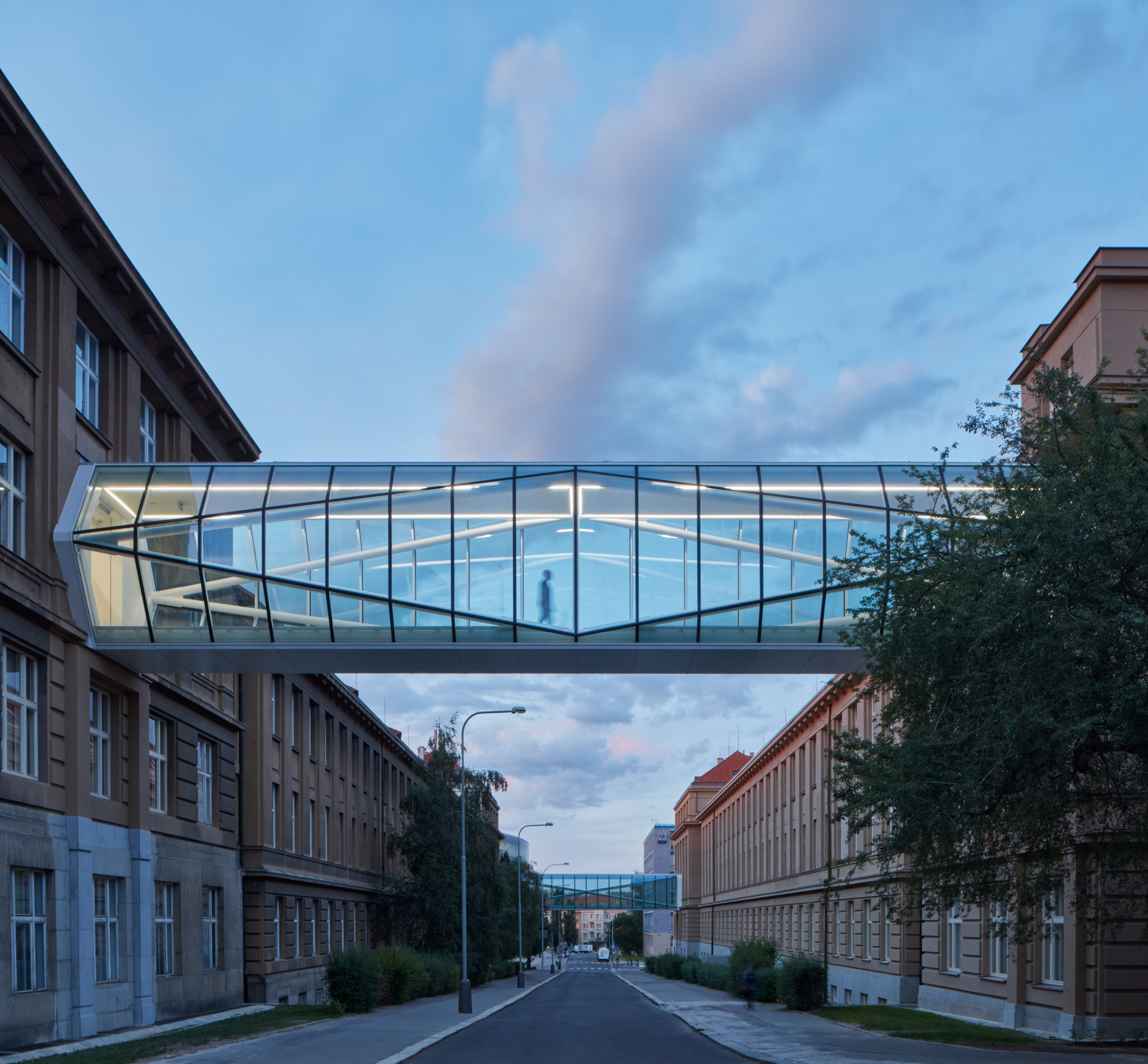 Klasicizující budovy VŠCHT v Dejvicích propojily krystalické lávky od studia ov-a