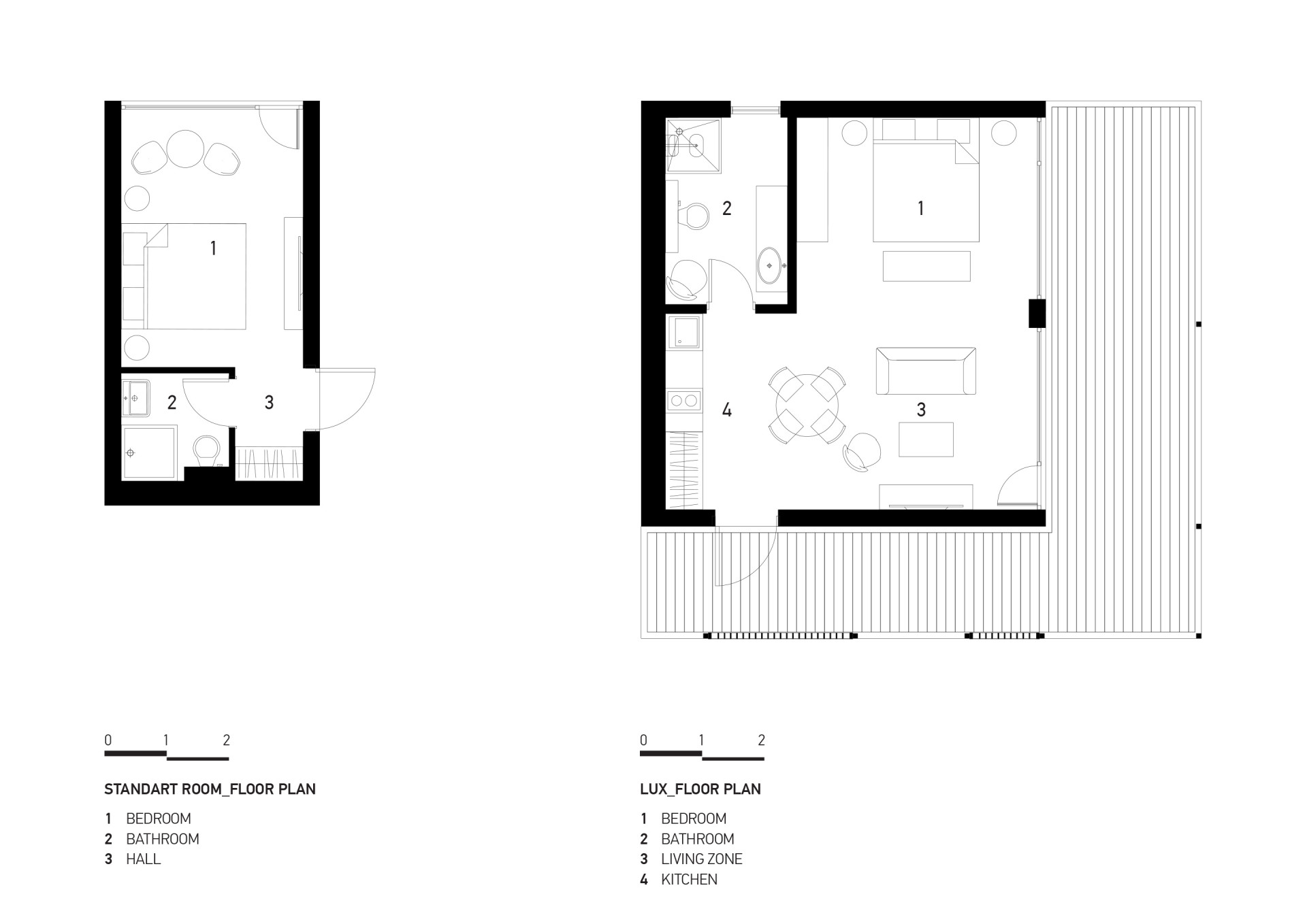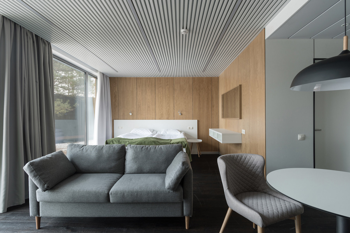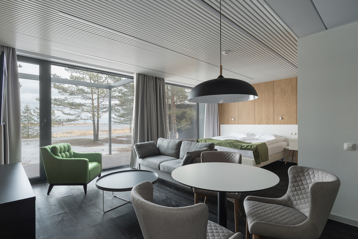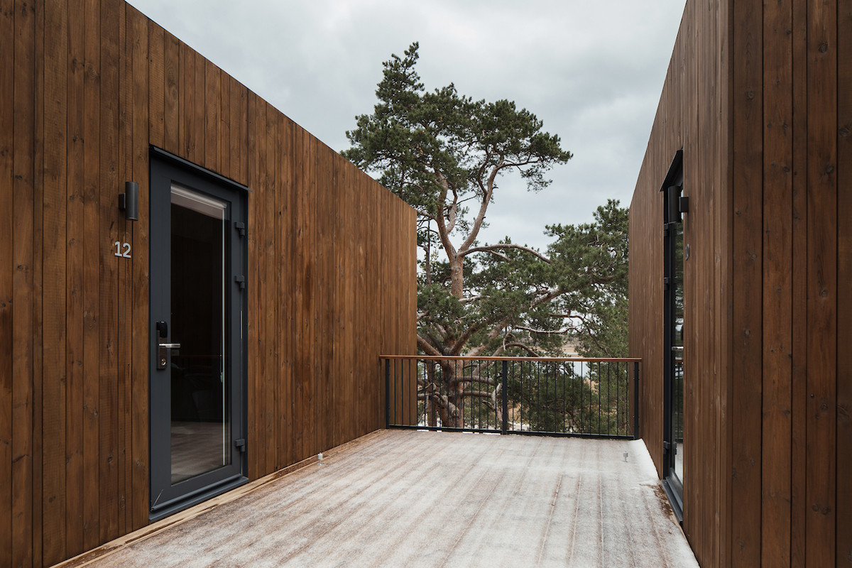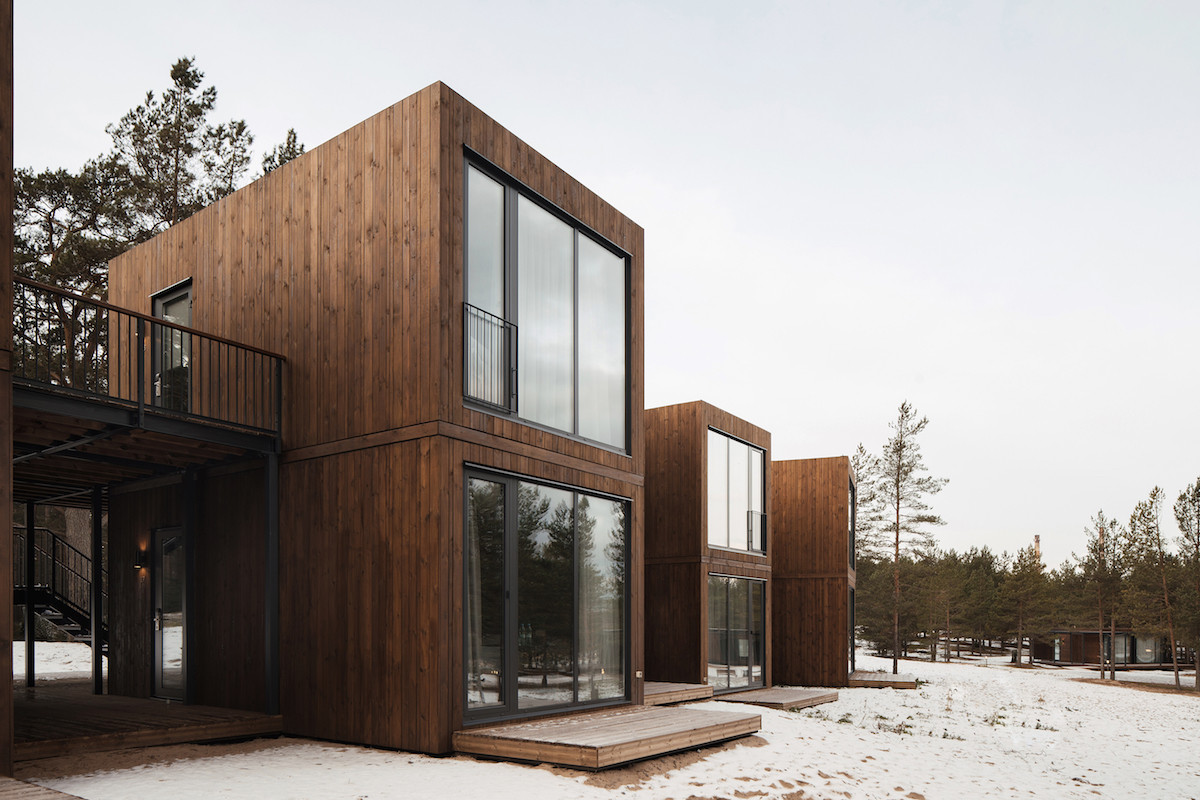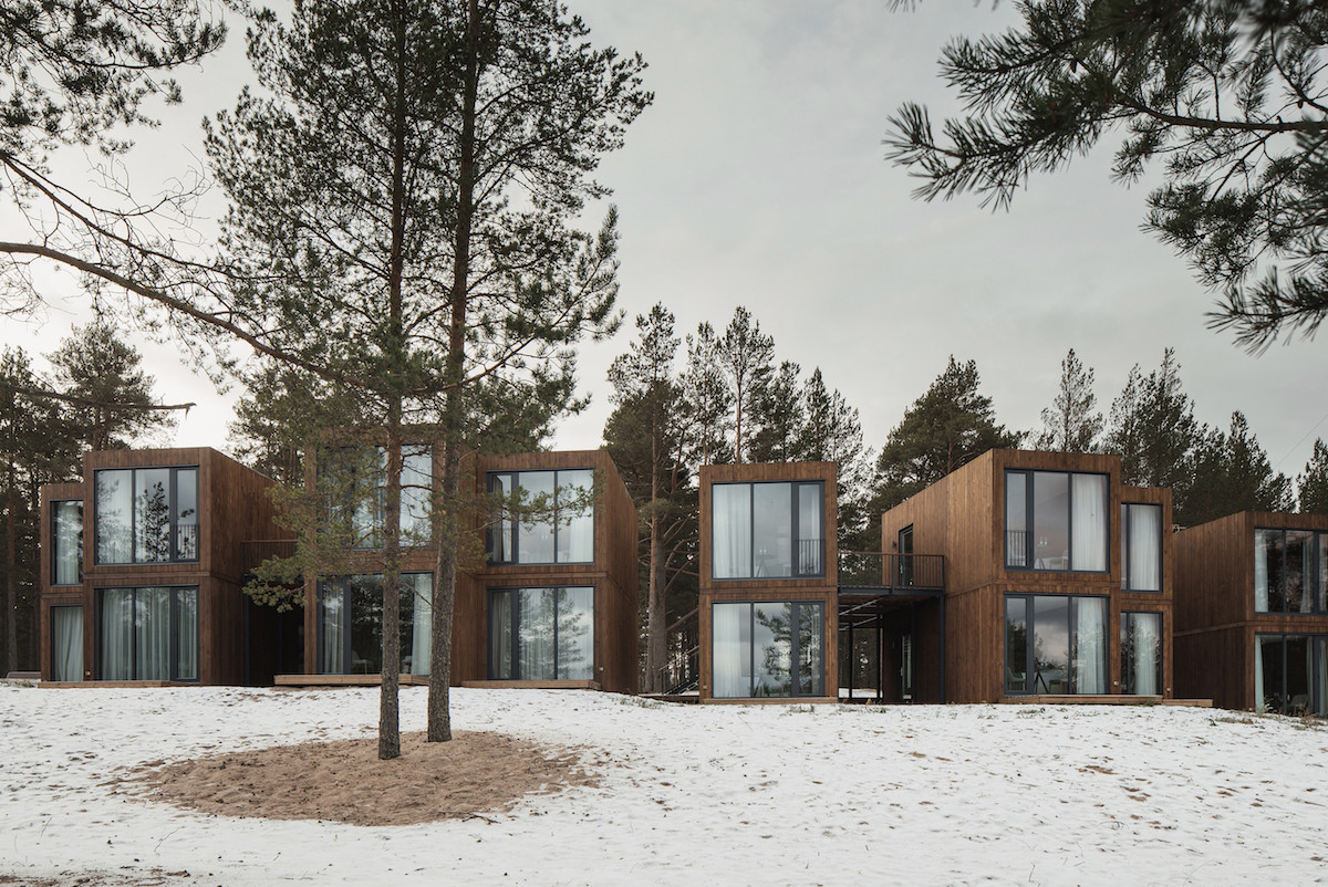 Venkovský hotel v severní části Ruska leží na břehu jezera Ladoga, 120 kilometrů od Petrohradu. Architekti z ateliéru Rhizome Group navrhli kompletně prefabrikovaný komplex na břehu jezera uprostřed borovicového háje. Hotelový areál tvoří dvoupatrové podlouhlé bloky, přičemž každý v modulů v sobě ukrývá jedno apartmá. Využití modulární technologie maximálně přispělo ke snížení dopadu stavebních prací na okolní prostředí.