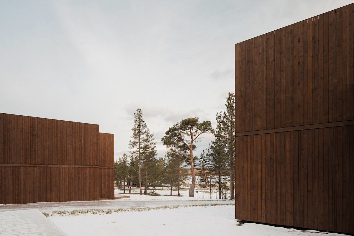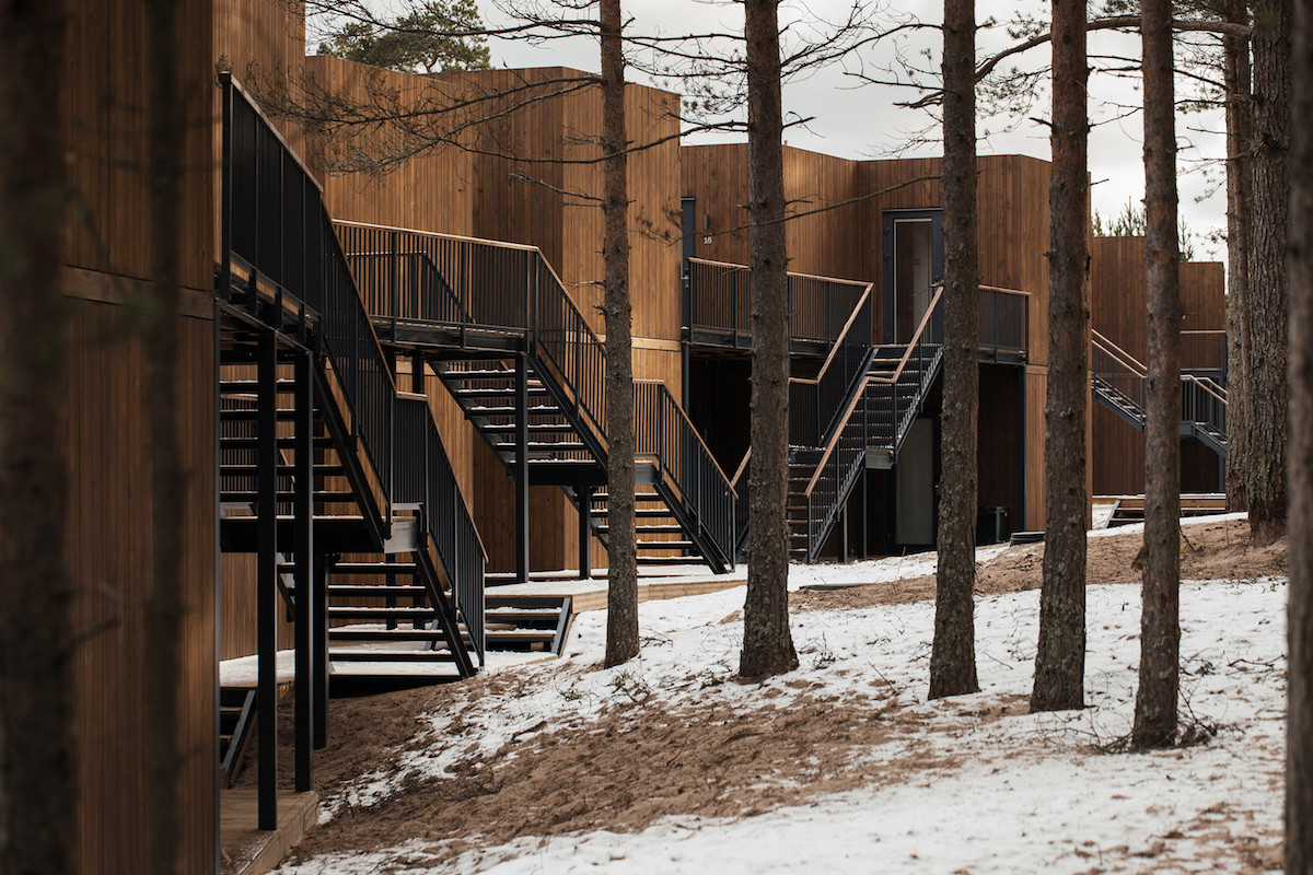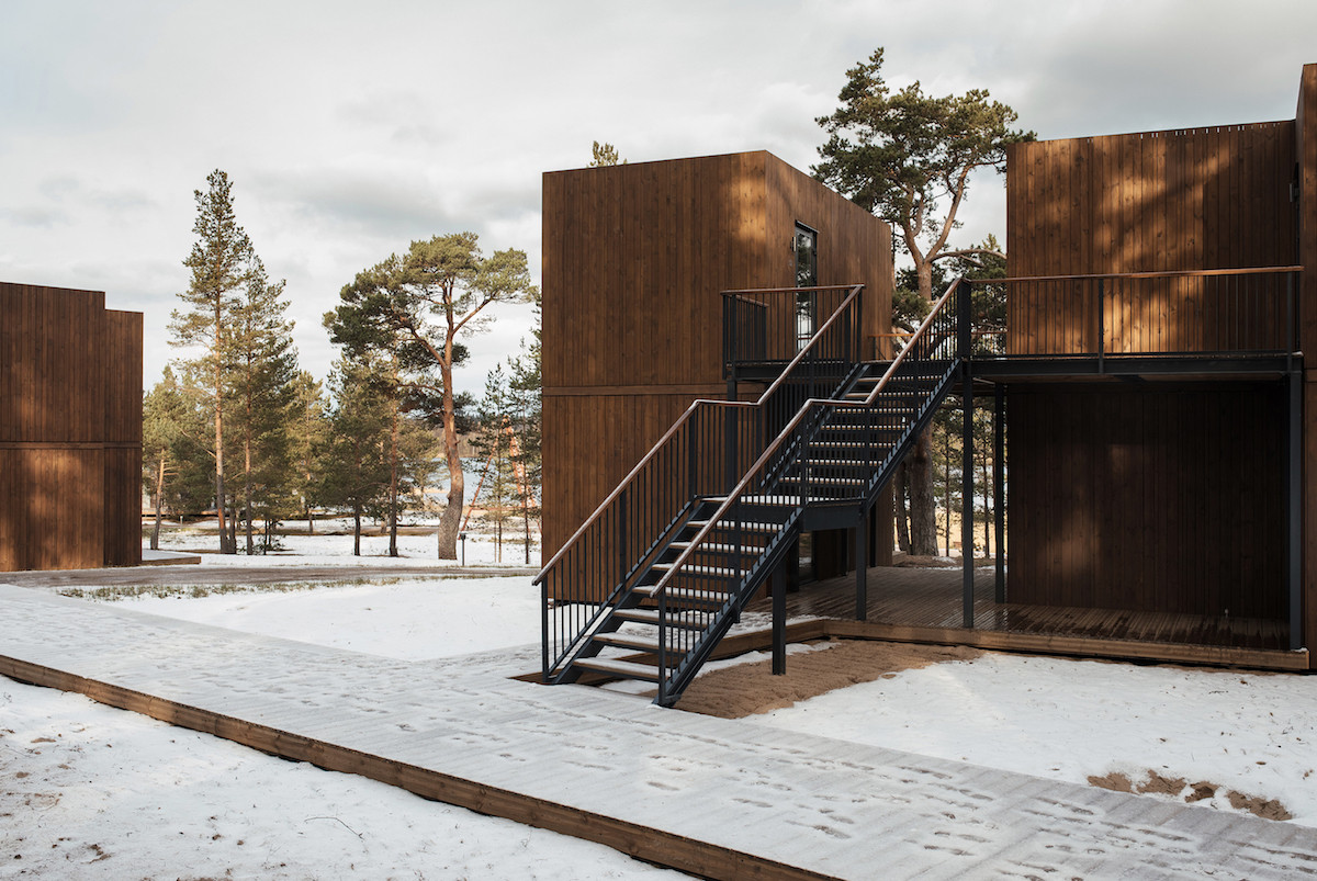 Kompletně prefabrikovaný hotel stojí uprostřed borovicového háje na severu Ruska