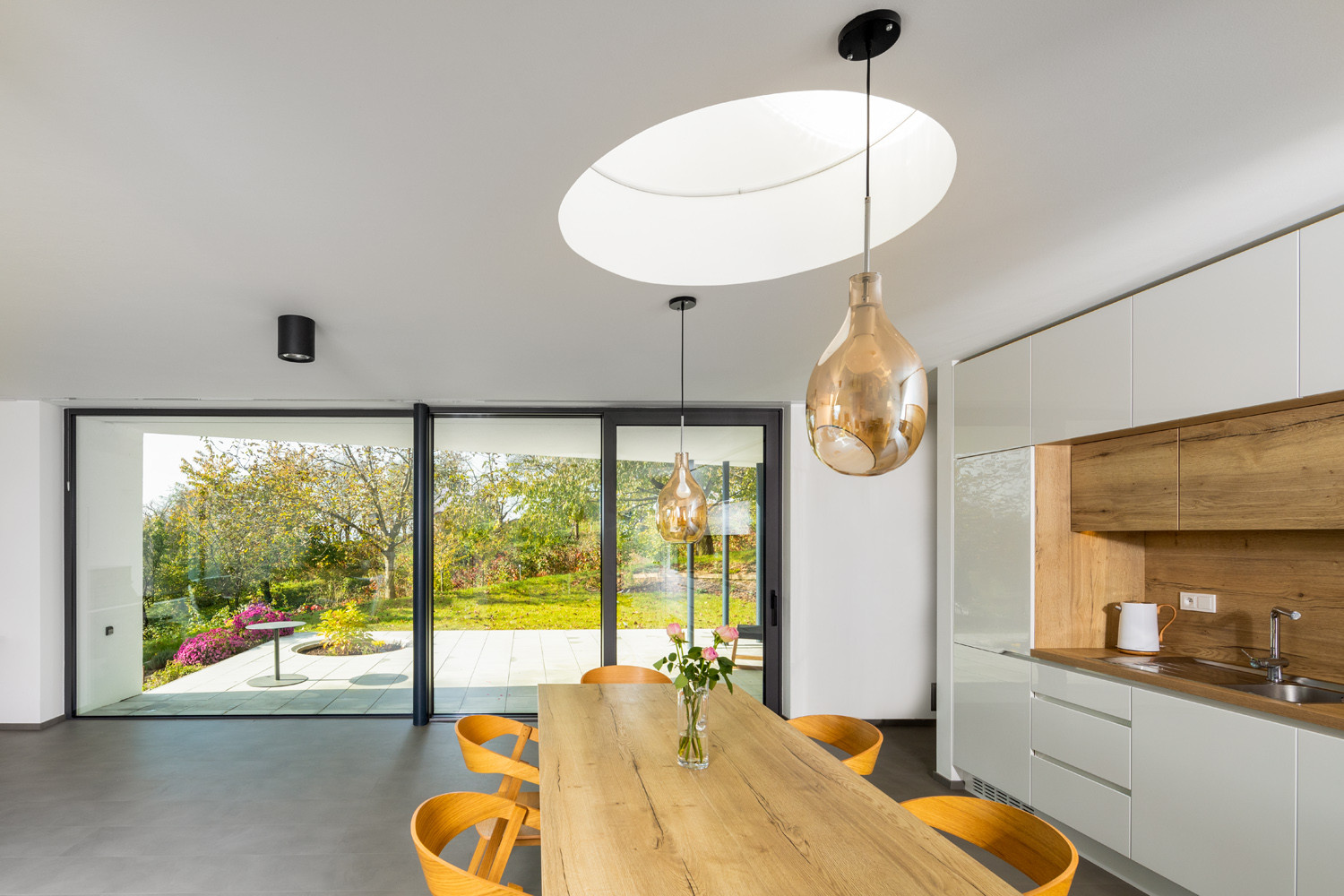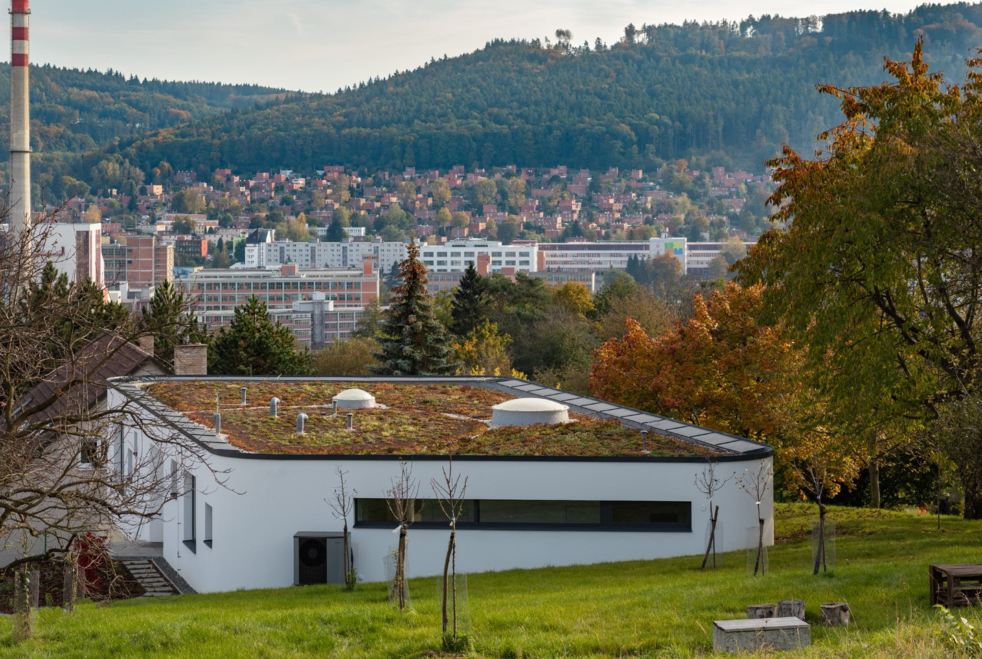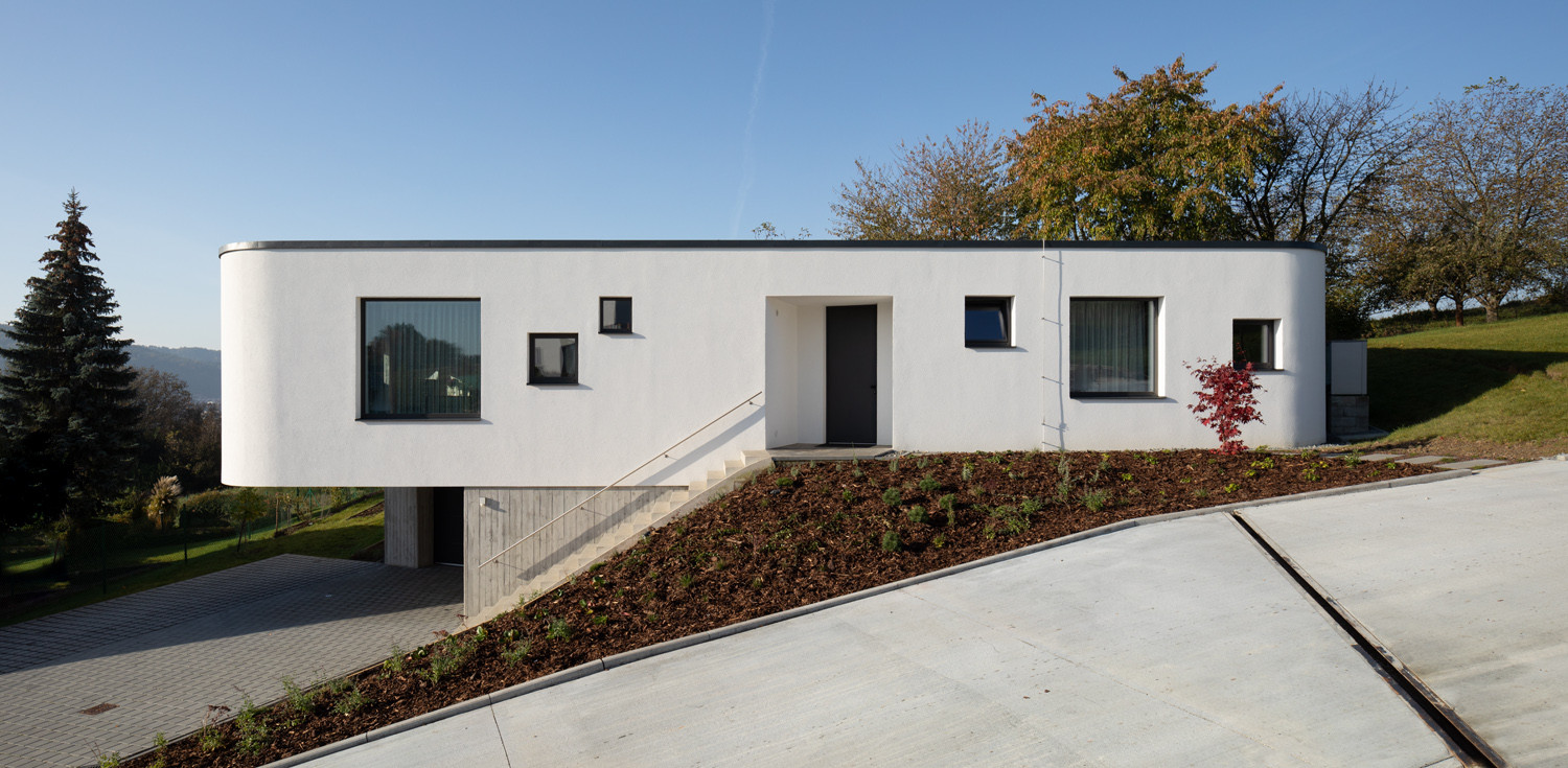 Zlínské architektonické studio DOOOM vedené architekty Igorem Bergmannem a Ondřej Lukešem vypracovalo neobvyklý koncept nového rodinného domu s názvem Ajfon, který odkazuje na design chytrého telefonu, kterému se stavba v určitých ohledech podobá. Jednopodlažní dům zaujme svými zaoblenými rohy, rastrem oken, kruhovými světlíky i dalekými výhledy na Zlín s nezaměnitelnými baťovskými domky díky umístění ve svažitém terénu.
