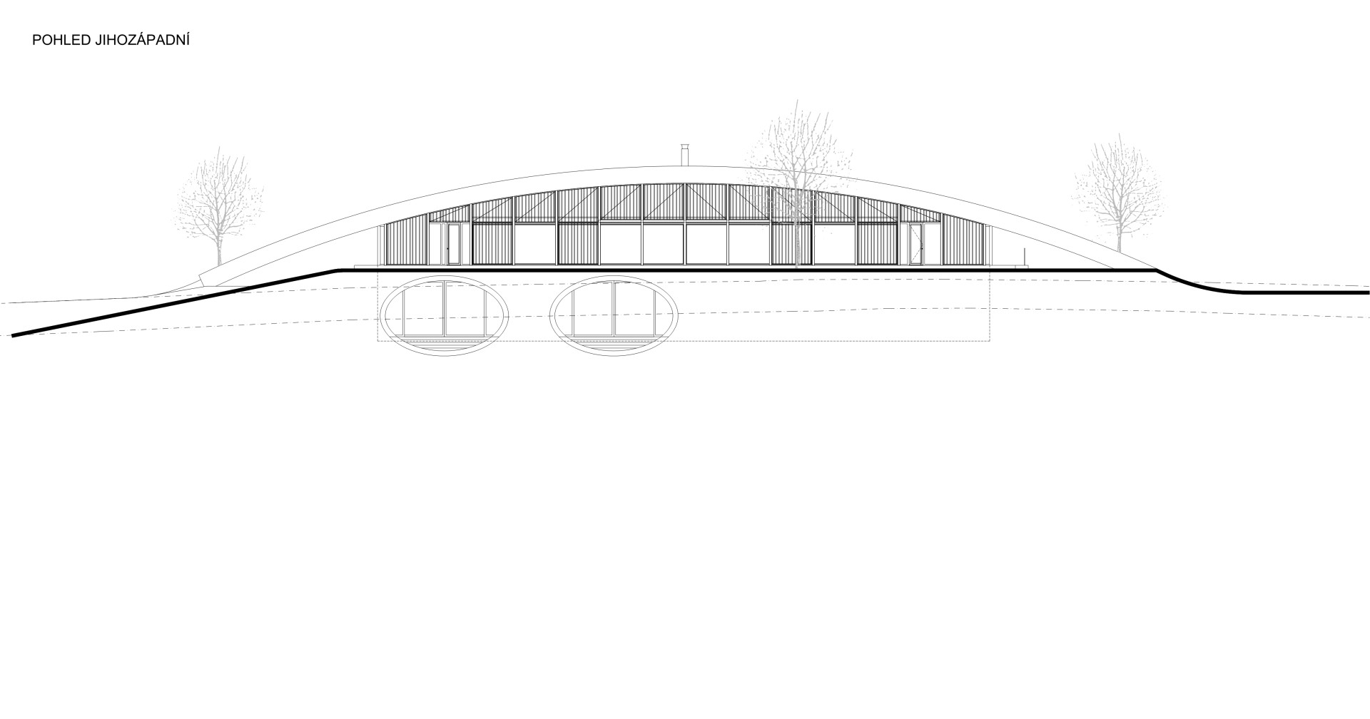 Vinařský dům, který má tvar kopce, navrhl architekt Aleš Fiala. Podle svých slov chtěl navázat na terén místa, z interiérů novostavby se otevírá výhled až na pálavské kopce. Její střecha je pochozí, svým způsobem tak místu navrací plochu, kterou dům zabírá. „Umístění objektu ve volné krajině s sebou pochopitelně přineslo vysoké nároky na architektonické a krajinářské začlenění. Na krajinný kontext reagujeme formou mírného oblouku – vlny v krajině, pahorku mezi pahorky,“ popisuje Aleš Fiala.