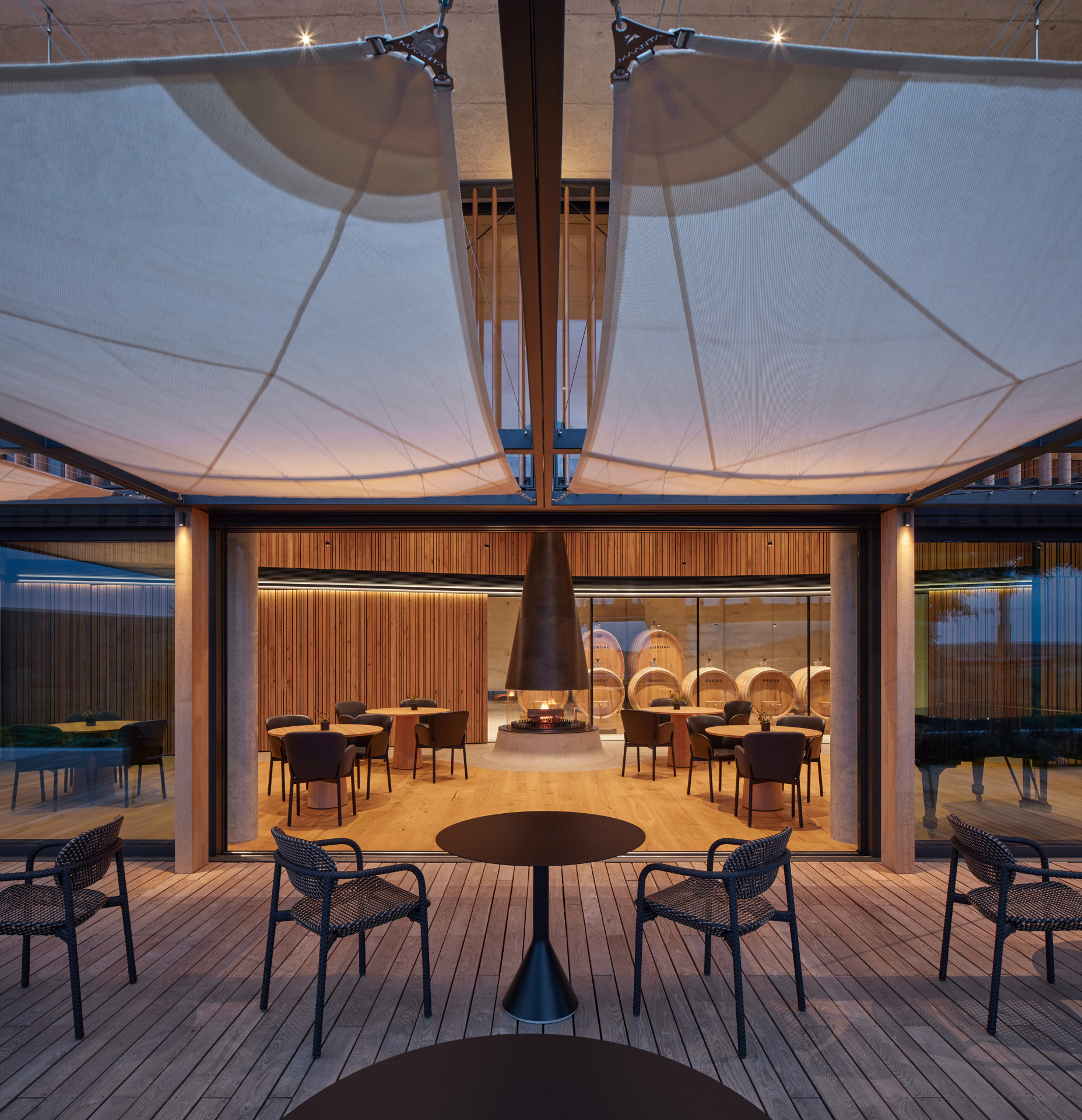 Vinařství Gurdau má dvě podlaží, v suterénu se skrývá výroba, víno se sem dává ležet a taky se tady archivuje. V přízemí se pak víno konzumuje, dá se tady ale i přespat, součástí jsou dva apartmány pro ubytování.