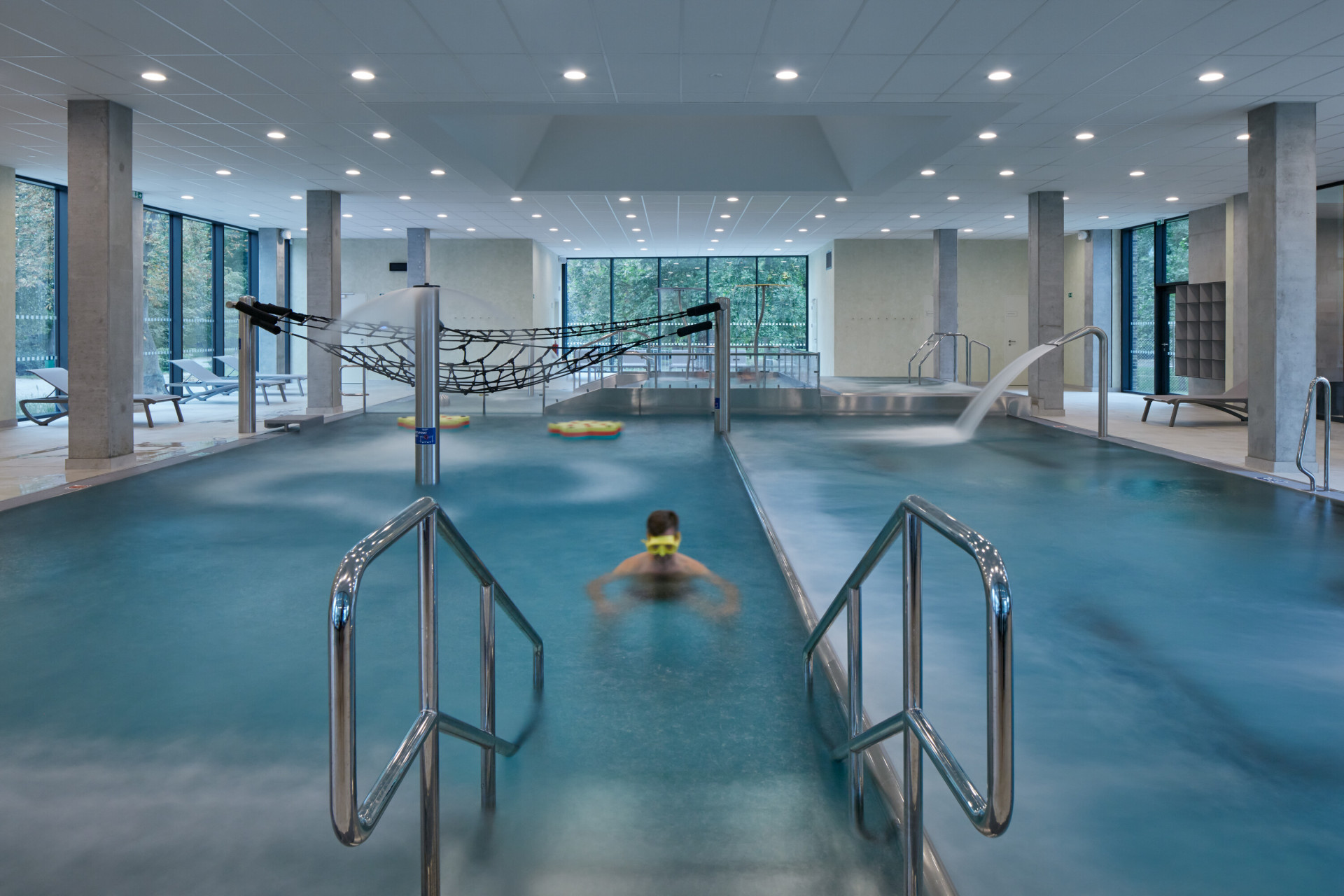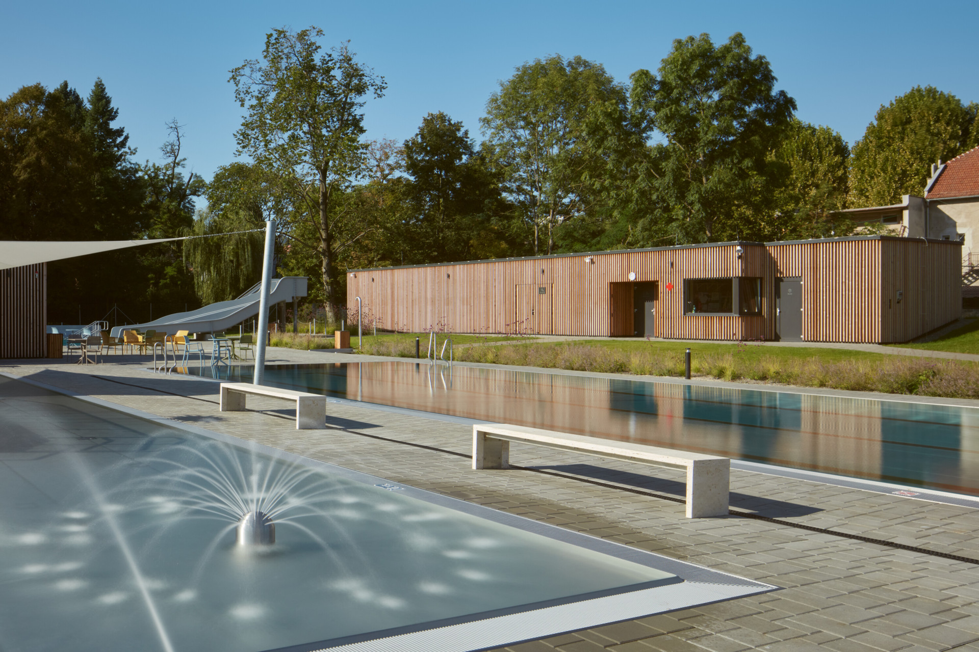 A kdyby se vám do vody nechtělo, můžete zamířit do wellness k saunám. Anebo navštívit objekt jen tak, funguje v něm kavárna, která má i vlastní venkovní terasu. Architekti říkají, že chtěli maximálně propojit interiér s exteriérem. To se jim podařilo, za rozsáhlými prosklenými plochami se otevírají pohledy do zeleně parku. Současně ale dosáhli dalšího a neméně důležitého efektu. Aquavparku dali parametry městského domu a dokázali, že se podobné provozy nemusejí umisťovat jen na okraj obcí a měst. Snad u nás bude podobných realizací přibývat.