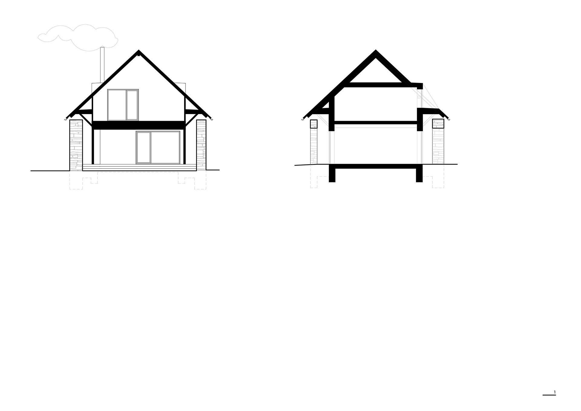 Velkým tématem se v návrhu stala práce se světlem. Aby jej do interiéru pronikalo co nejvíce, je část střechy prosklená. Objekt využívá velkoformátová okna, skrze která proniká do obývacího prostoru světlo svedené po odsazené kamenné zdi.