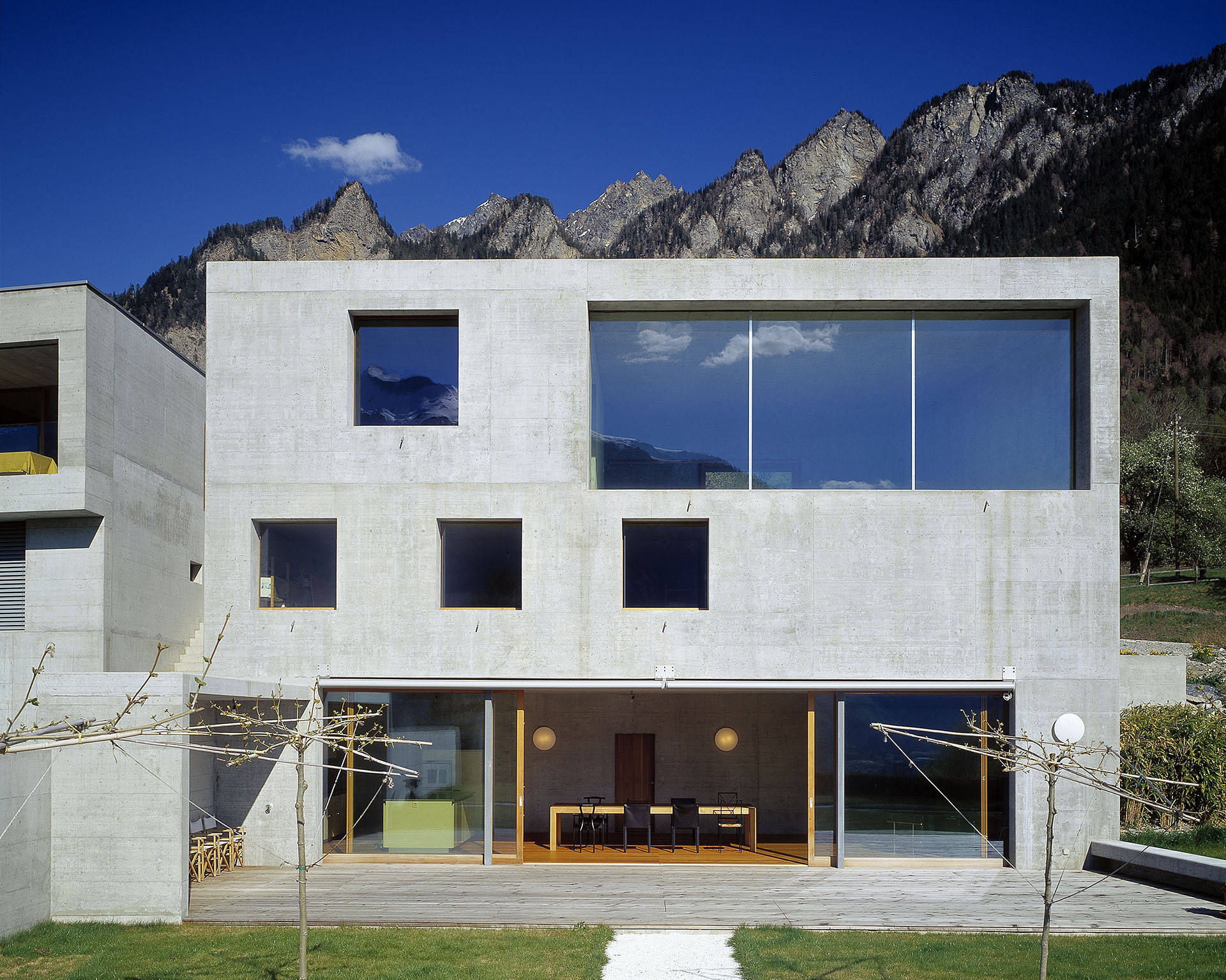 Jedním z prvních, kdo využil takových vlastností betonu, byl Patrick Gartmann, švýcarský inženýr a architekt. Před dvaceti lety v roce 2005 dokončil projekt svého třípatrového domu v Churu ve Švýcarsku. Monolitická konstrukce stojí mezi dvěma podobnými budovami na úpatí hory Montalins.