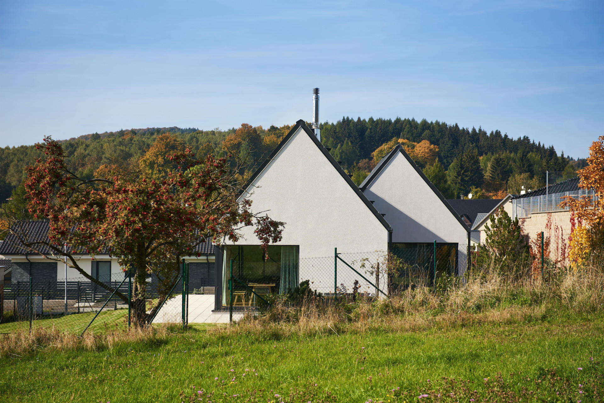 Krušné hory bývaly chudý a zapadlý region. Ale to se mění, lidé sem jezdí především za odpočinkem v nedotčené přírodě. Také rodina z nedalekého Mostu si tu chtěla postavit dům na rekreaci. Oslovili studio Modulora, které pro ně v minulosti vybudovalo vilu s rovnou střechou nedaleko města. Tady se zadání změnilo, nový dům je o 500 metrů výš nad mořem, musel se tudíž přizpůsobit místním povětrnostním podmínkám i regulativům.