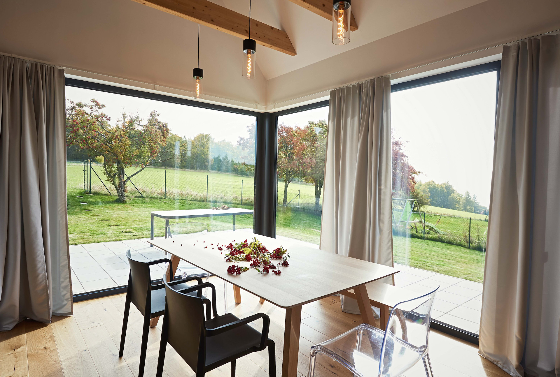 - Výplně otvorů: okna plastová antracitový odstín, s izolačními trojskly (U=0,5 W/m².K)