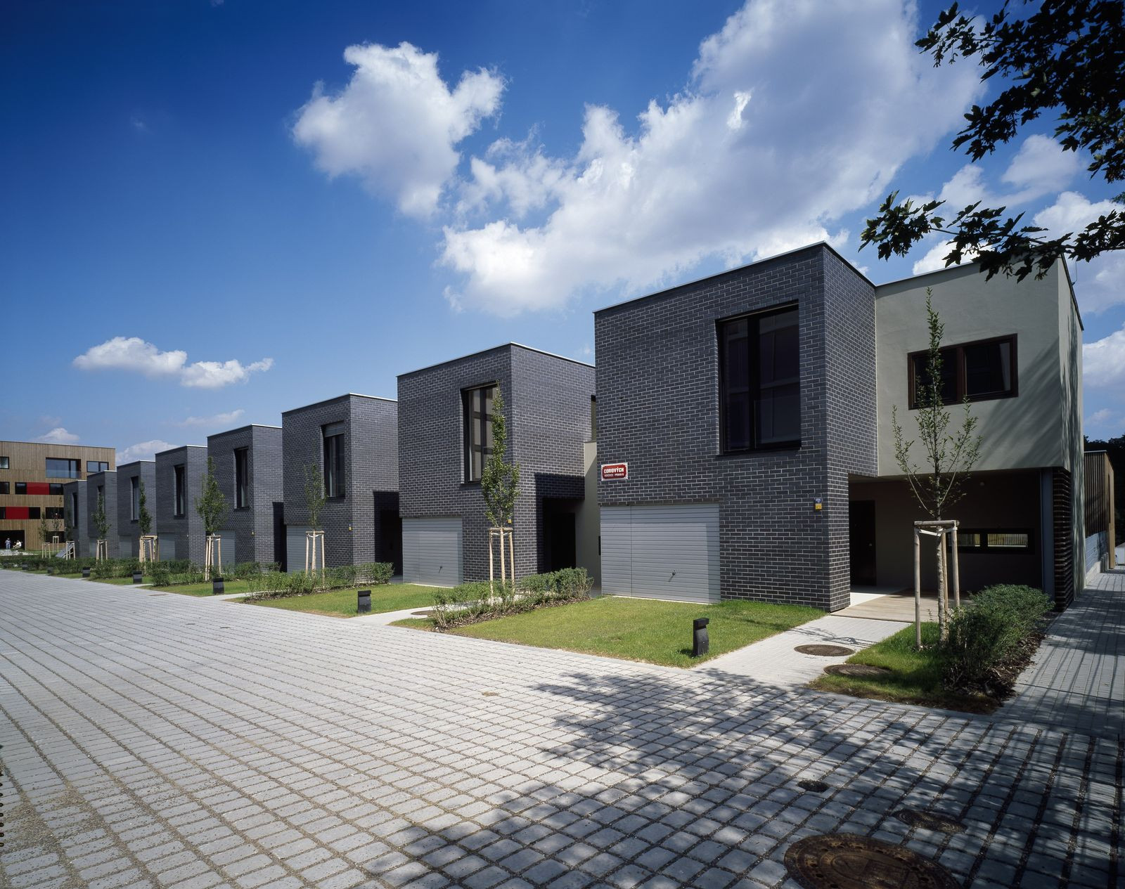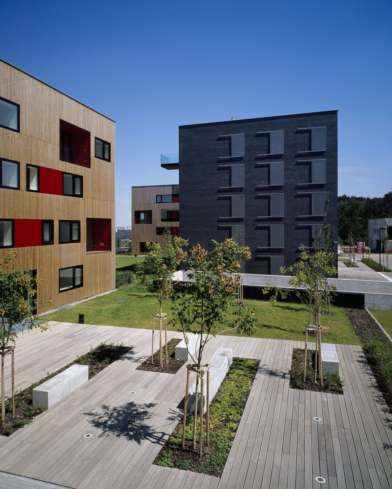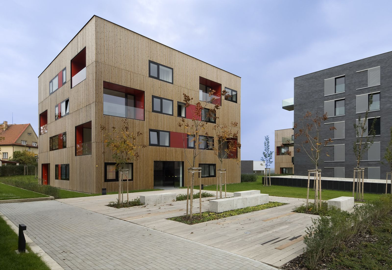 Vzájemné propojení domů mezi sebou je dáno regulativem objemů staveb, řešením lodžií a stínících systémů. Materiálové řešení používá režnou cihlu a pohledový beton, doplněné o hladkou omítku nebo obklad z dřevěných nebo cemento-třískových desek či lamel. Přesto, že jednotlivé domy navrhli různí architekti, celý areál si udržuje jednotný charakter a soulad.
