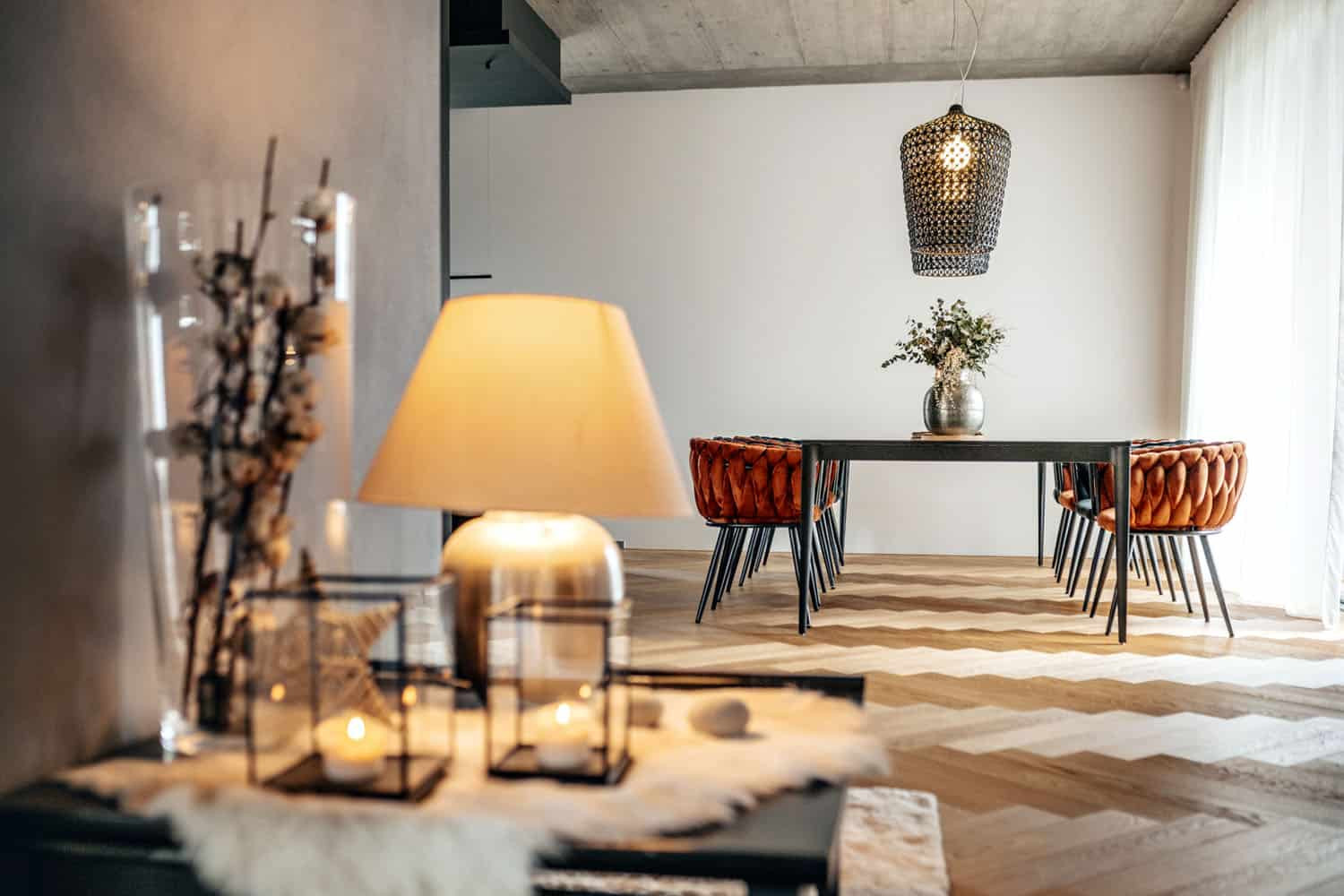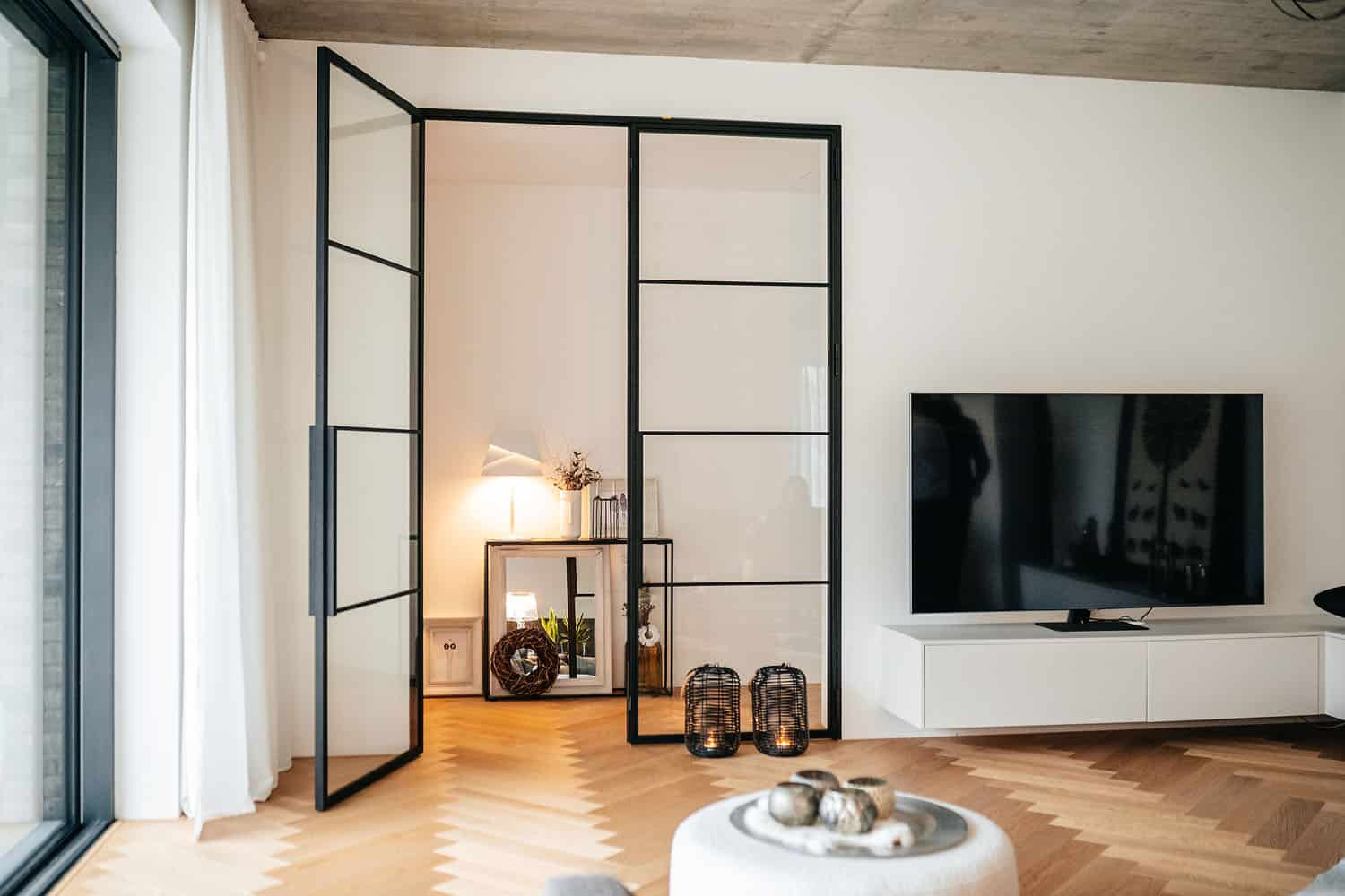 Obývací pokoj a všechny ložnice jsou však v jedné rovině, z každé místnosti lze vyjít do zahrady. Došlo i na vysněnou východní terasu. Kuchyně je ovšem od obývacího pokoje oddělená, trendům navzdory: „Ze zkušenosti z předešlého domu, kdy z obývacího pokoje bylo vidět na kuchyňskou desku a dřez, jsem byla skálopevně přesvědčena, že kuchyň bude mít své místo za stěnou. Nechci, aby ovlivňovala interiér obývacího pokoje, protože perfektně uklizená kuchyň existuje pouze v časopisech,“ říká Julie Kočárková v rozhovoru.