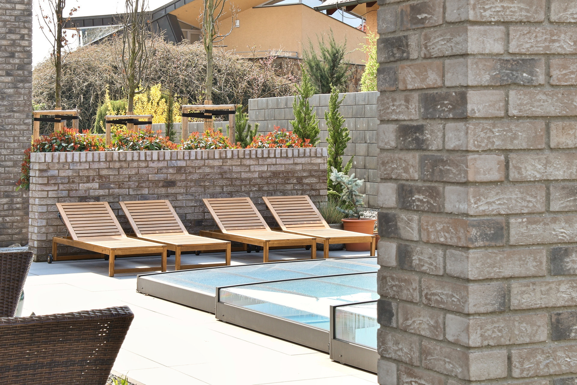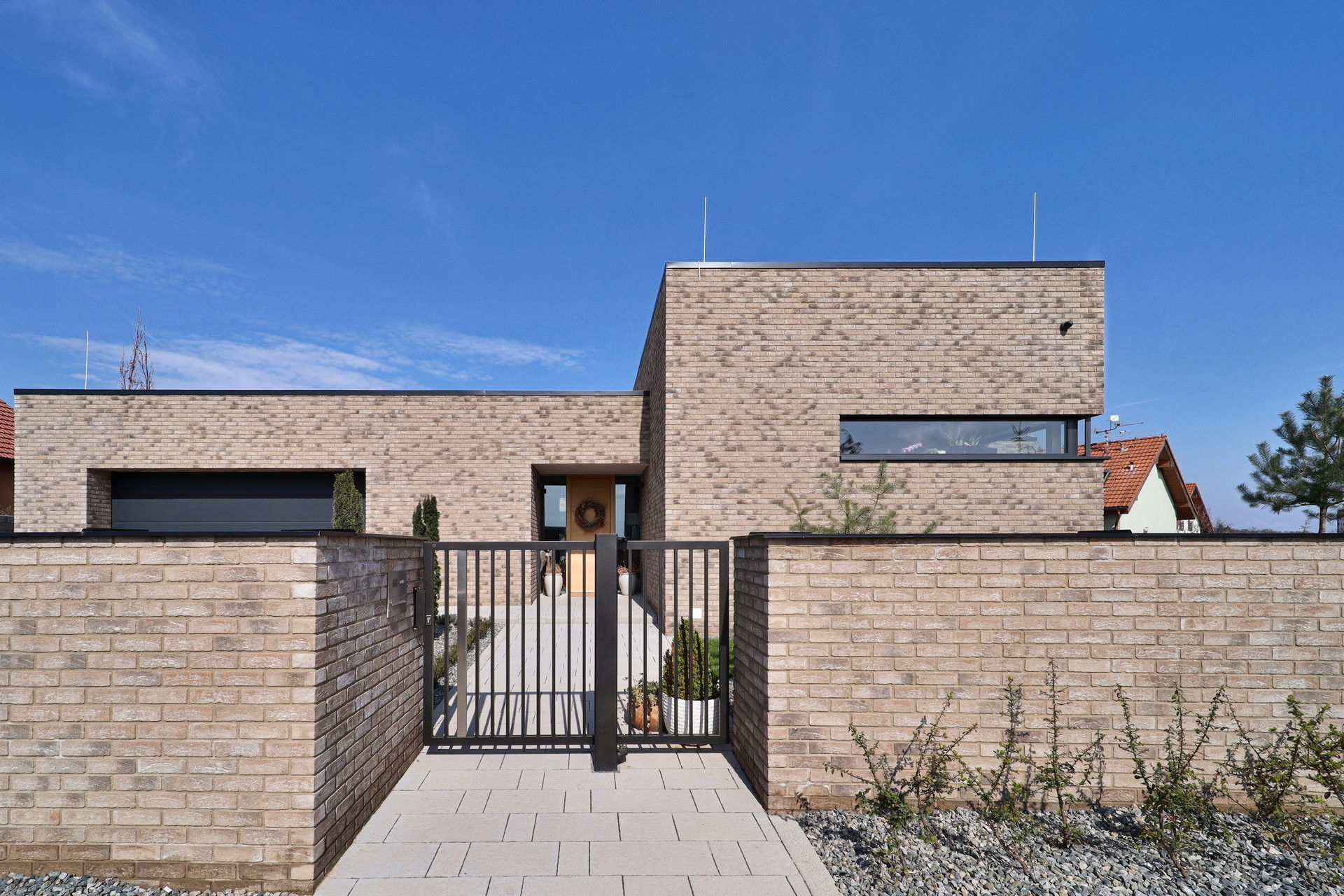 Ve stejném odstínu, ale z lícových cihel WDF.Fuji je zídka v zahradě a plot.