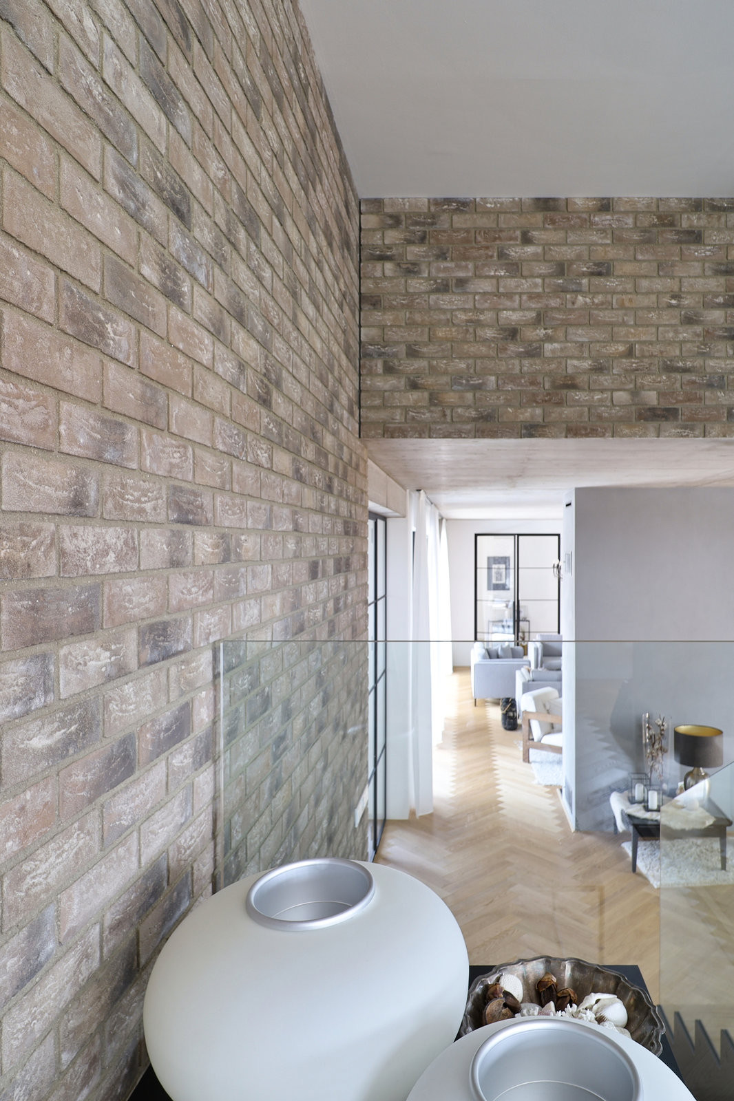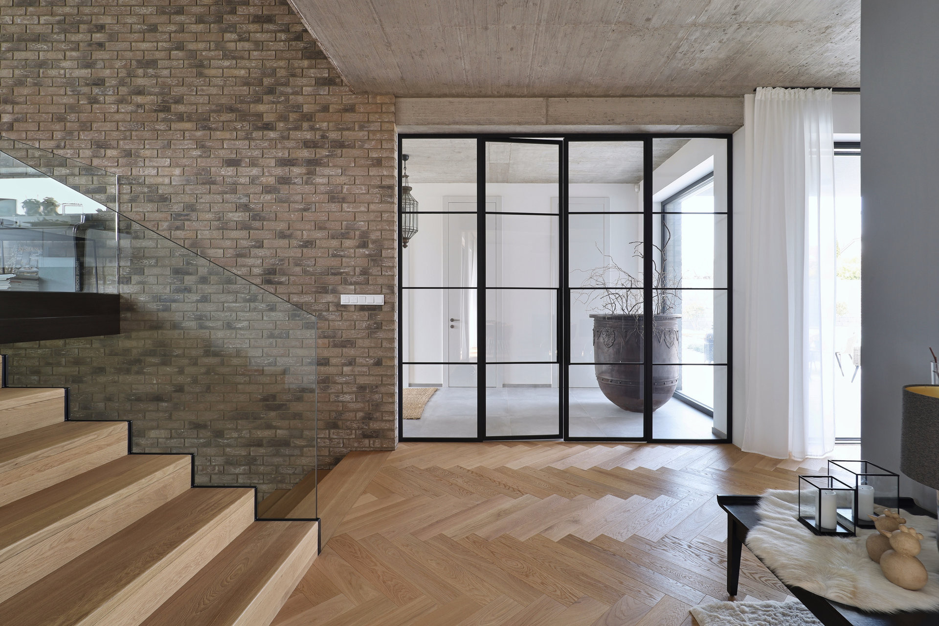 Po vzorování několika variant dostal přednost rustikální lícový pásek WDFP.Fuji. Tentýž materiál se objevuje také v interiéru, kde zdobí schodiště a stěny pánského pokoje. Dodává jej Klinker Centrum.