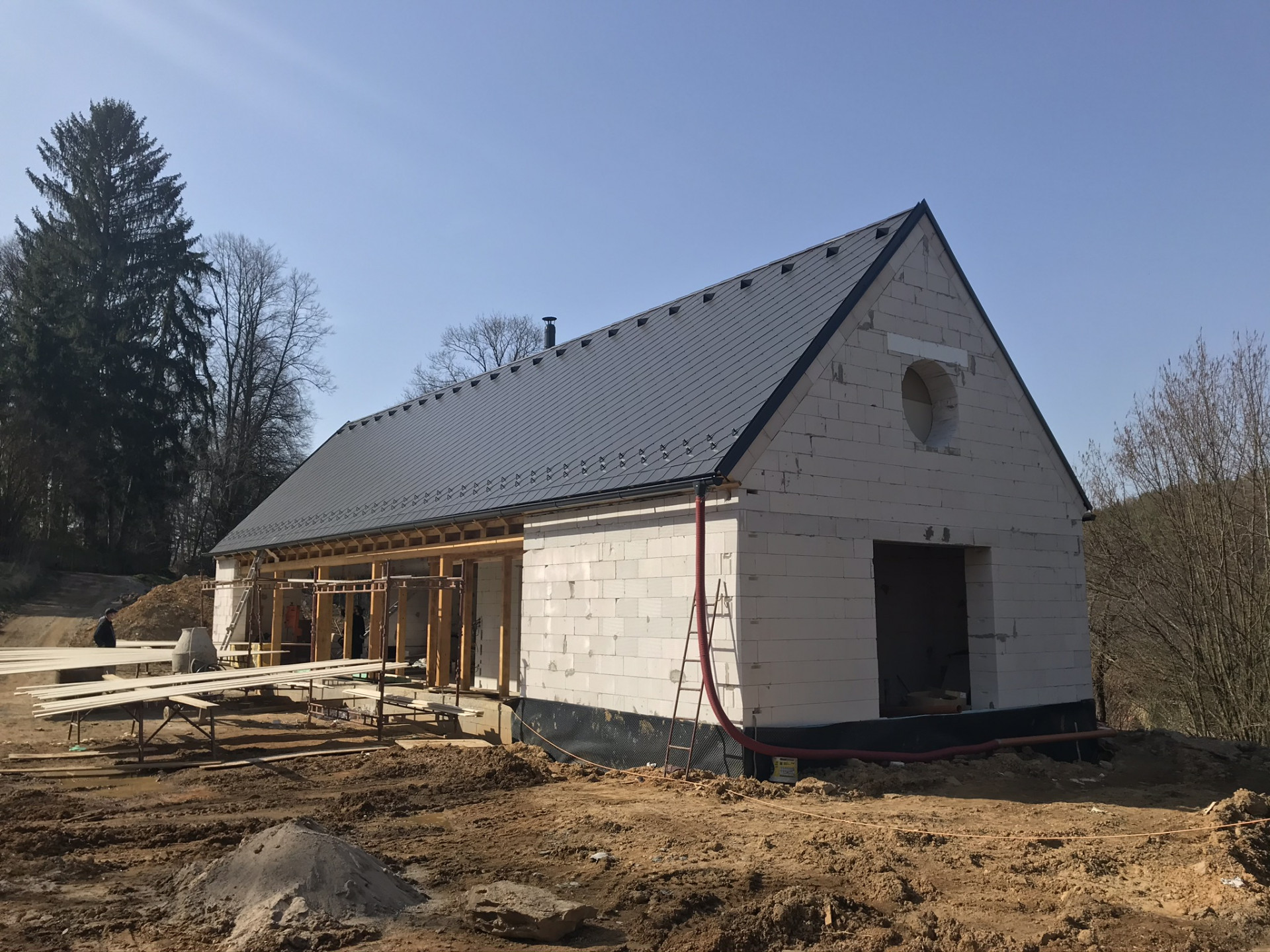 Klienti na mě dostali doporučení od jiných architektů, kteří na to neměli kapacitu, a to především na rekonstrukci, která byla původně záměrem. Paradoxně se ale záhy rozhodlo, že to pro špatný technický stav bude lepší zbourat a stavět rovnou nové. Zadání bylo celkem jednoduché, víkendový dům pro mladou rodinu, za dobu projektu ji rozšířili dva malí hošíci. Aby mohli trávit čas co nejvíc spolu a blízko přírodě, hlavní společný prostor je velká kuchyně napojená na terasu, vedle pak oddělitelný obývák, který nazýváme spíš klubovna, s krbem.