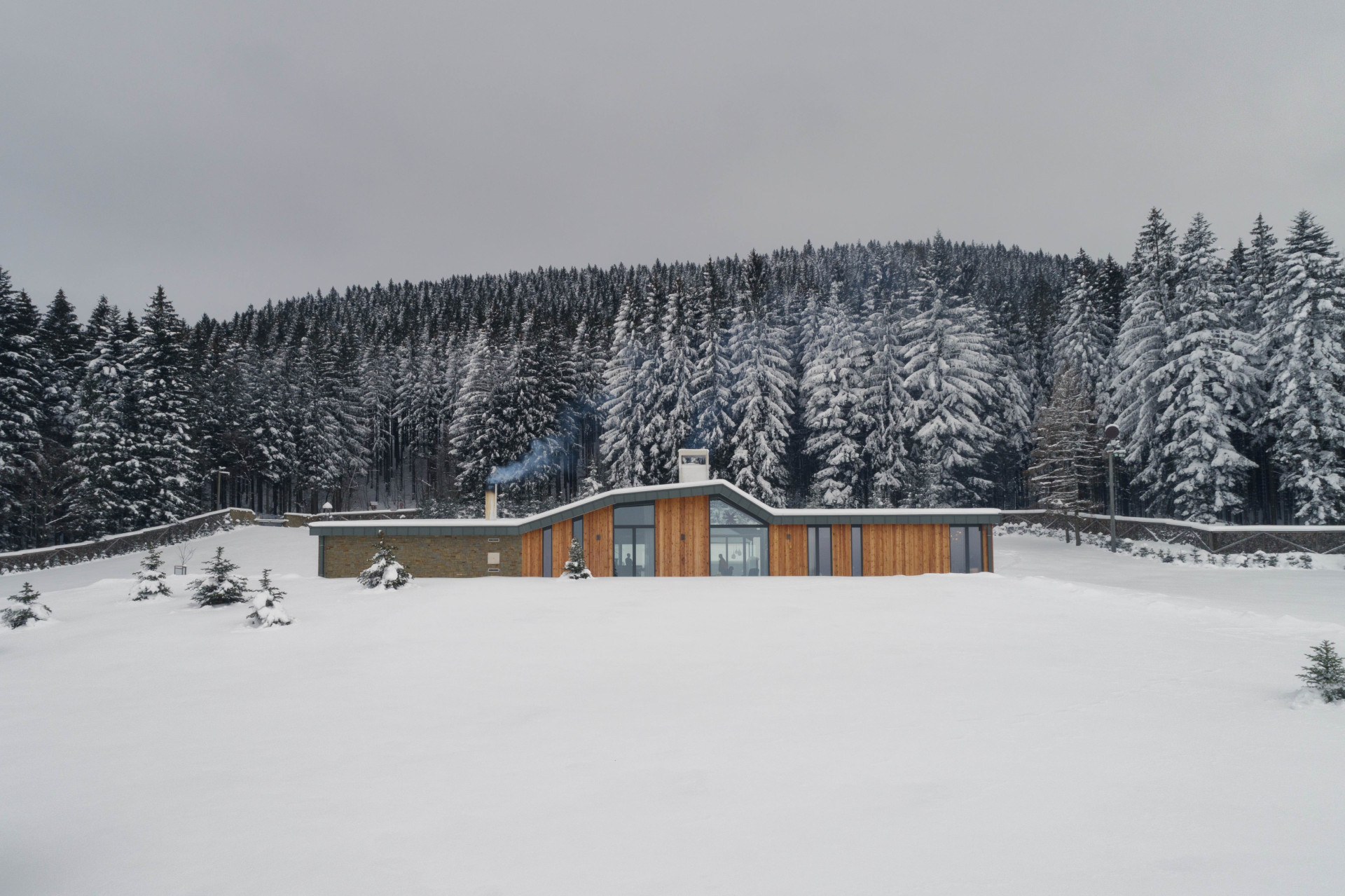 Novostavba domu v CHKO Beskydy je postavená především z modřínového dřeva a místního kamene. Do krajiny se otevírá velkoformátovými okny, která bylo vzhledem k náročným povětrnostním podmínkám potřeba speciálně navrhnout.