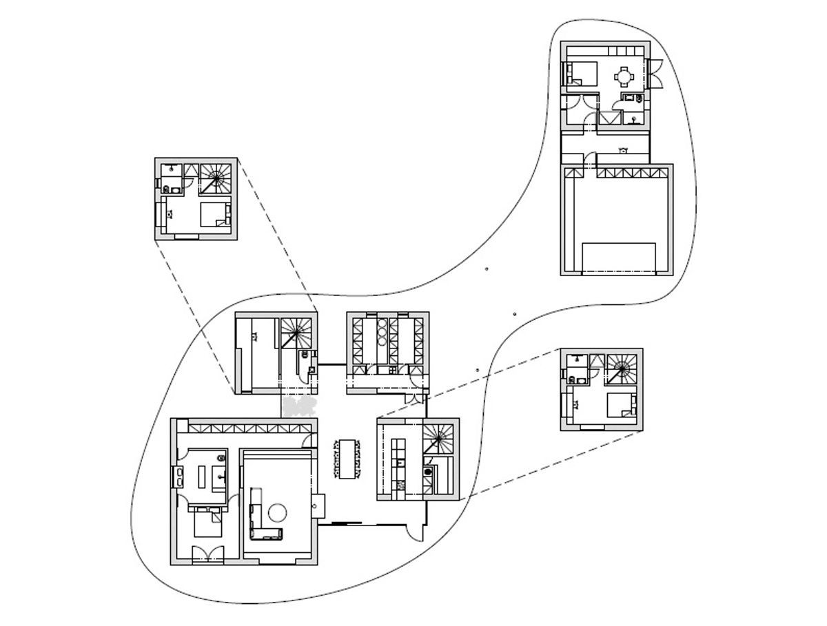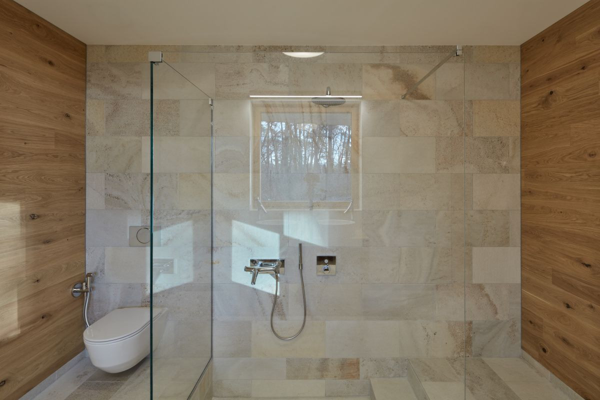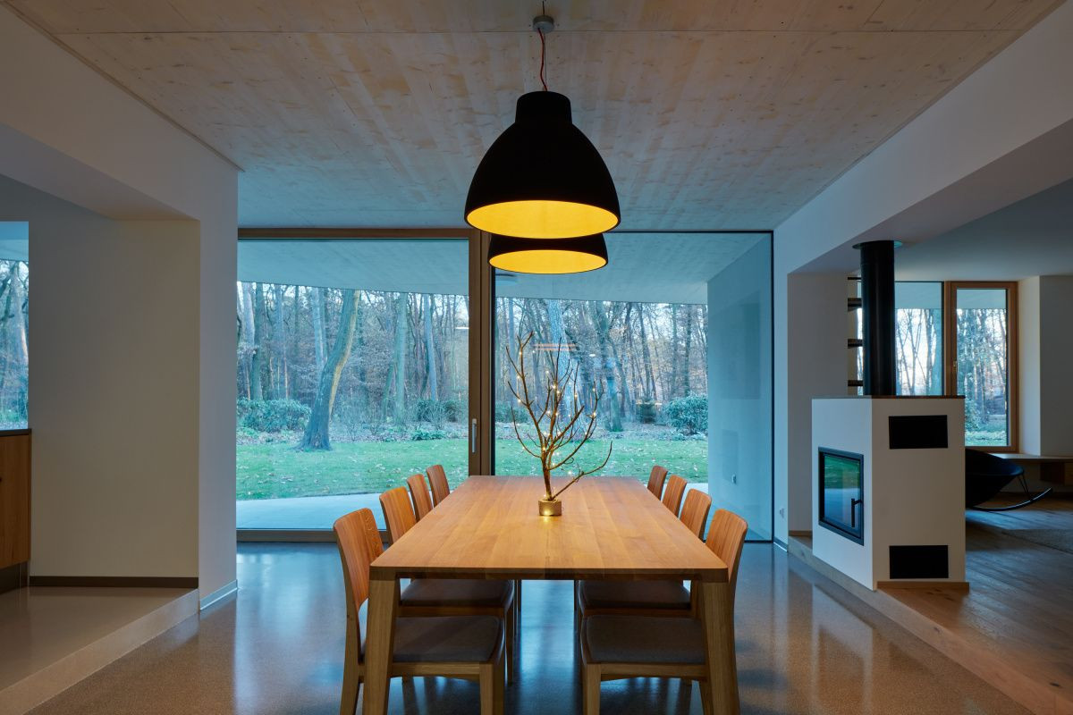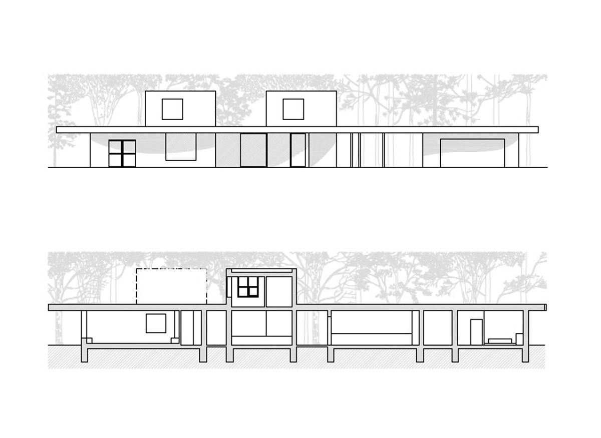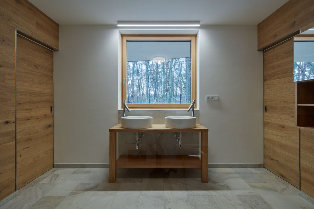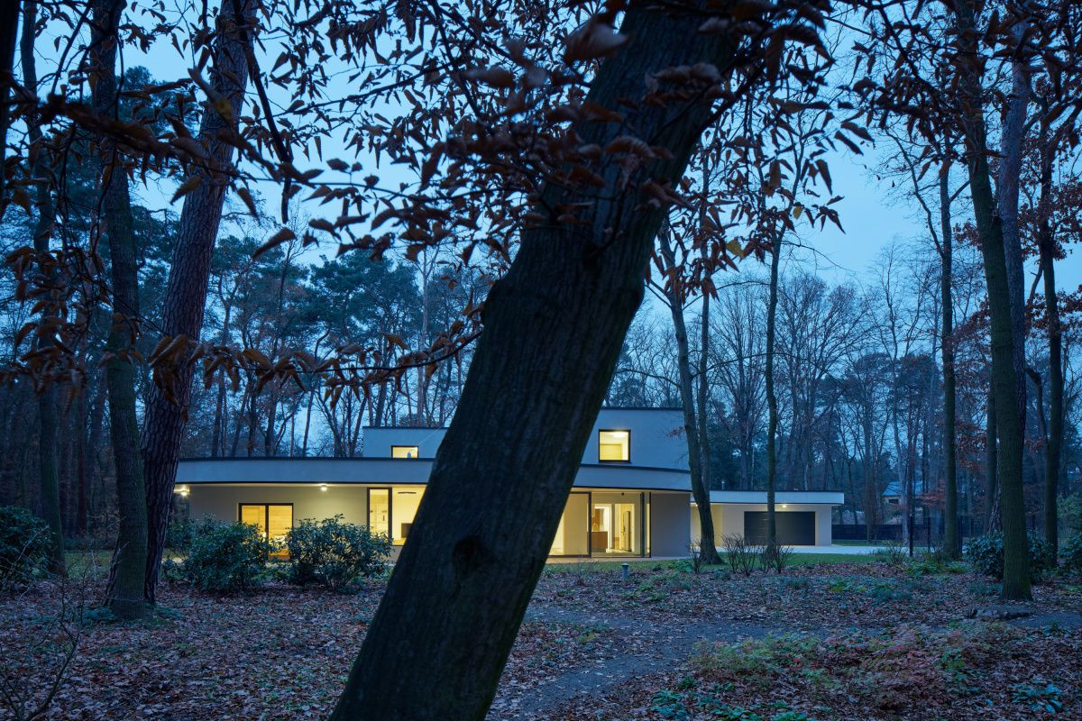 Novostavba vily se doslova proplétá mezi vzrostlými stromy v lesích u Staré Boleslavy. Budova slouží z jedné části z ateliéru, z druhé pak obytným prostorům rodiny.