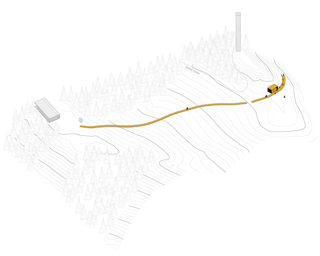 2021 architekti, LABAK, Lávka a prístrešok na Straníku, axonometrie – foto