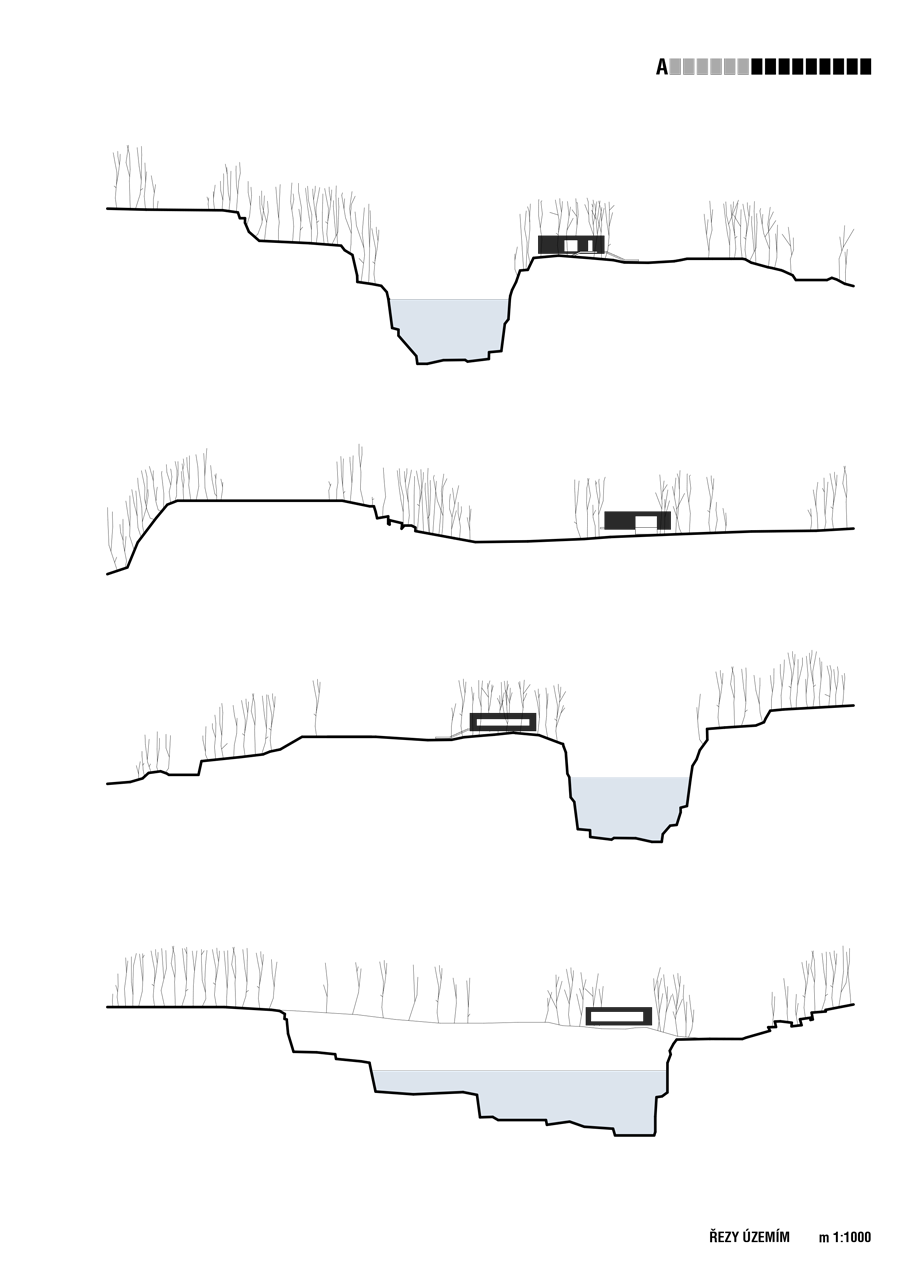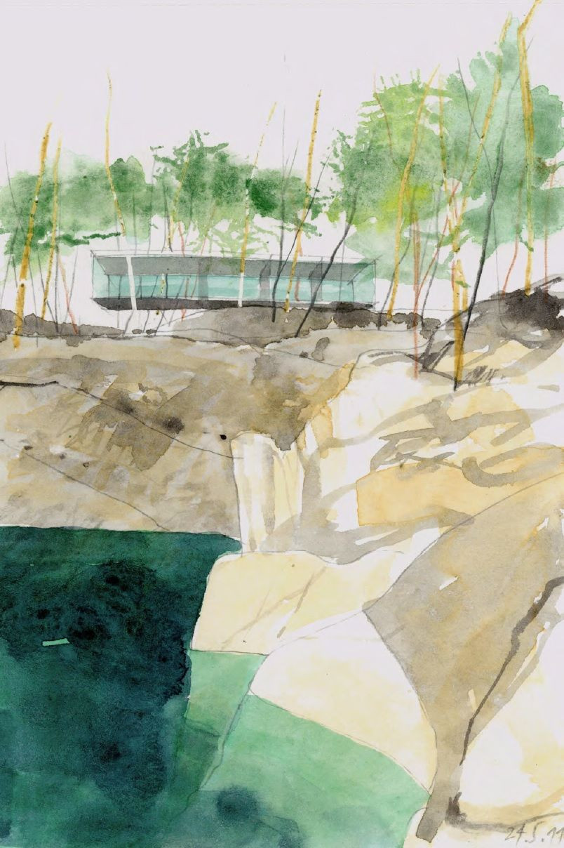 Ke zdárnému výsledku vedlo několik předešlých návrhů. Architekti původně předložili pět cest, kterými bylo možné se ubírat. Jednou z nich byla například i možnost vytěžit přímo v lomu kámen a v proláklině potom vybudovat stavbu nebo zastavit kaskádovitý terén při sestupu k vodě. Nakonec ale vyhrála strategická pozice uprostřed pozemku s kouzelným výhledem.