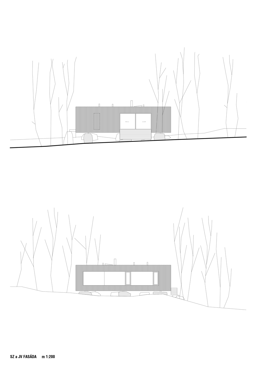 Ocelový montovaný roznášecí rošt byl usazen na žulové bloky, zbylé po těžební aktivitě. Na roštu potom stojí vlastní dřevěná konstrukce vybudovaná na základě systému „two by four“ vycházející z průřezu hranolů 2 x 4 palce. Strop se skládá z dřevěných sbíjených vazníků a plochou střechu v duchu blízkosti k přírodě pokrývá extenzivní zeleň. Fasáda je provětrávaná z dřevěných hranolů a okna hliníková. „Realizace má prověřit konstrukční, typologické a uživatelské vlastnosti prototypu,“ komentují achitekti.