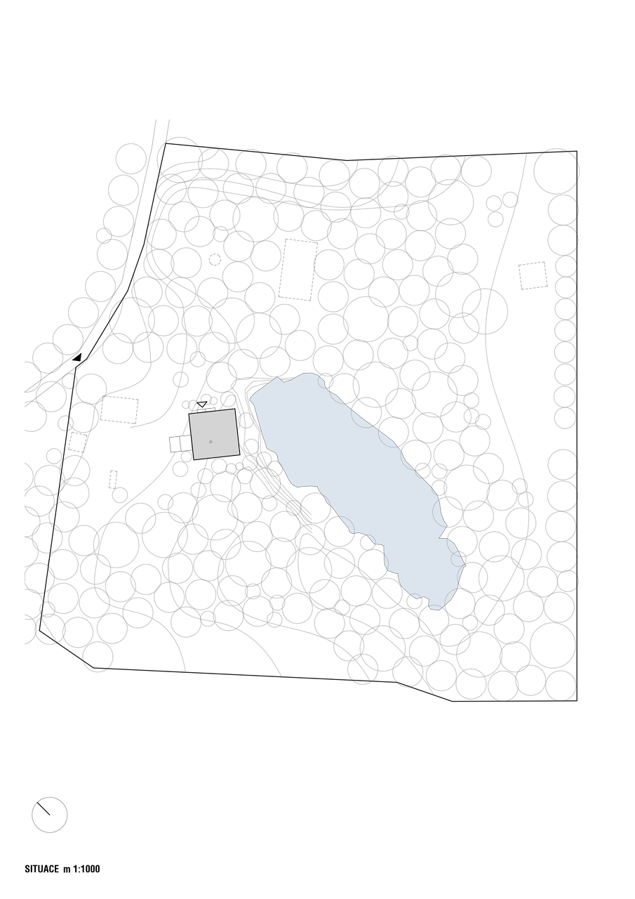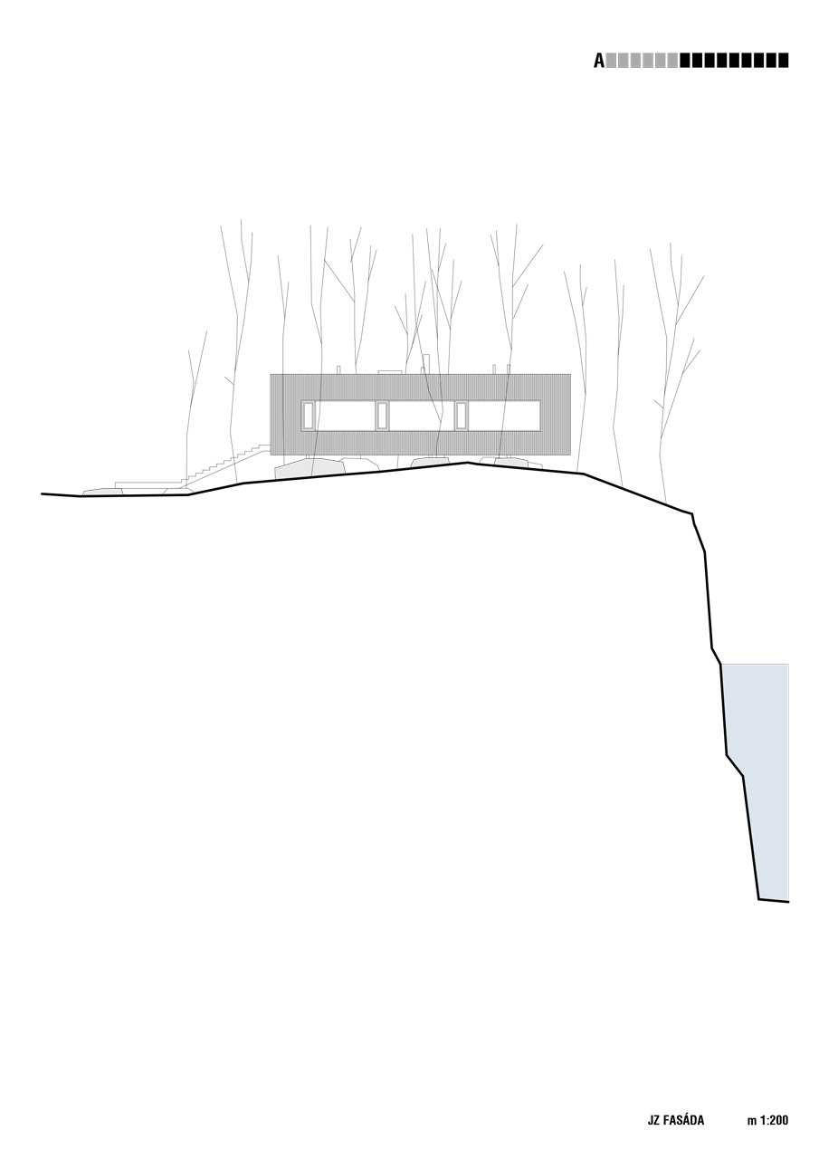 Označení minimalistický v tomto případě není použito jen jako módní přívlastek symbolizující jednoduché linie, ale jako linka protínající veškeré aspekty projektu. Vše se odvíjelo od primárního požadavku investorů, kteří hned na začátku chtěli skromnou stavbu nezatěžující životní prostředí. Přesně to se architektům povedlo. Unikátnost rozhlehlého pozemku u zatopeného lomu s bujnou zelení dokreslily kubickou stavbou o rozměrech 15 x 15 x 4 m, která nijak nenarušuje ráz okolní krajiny. Navíc je celá konstrukce levitující nad zemí demontovatelná, může tak zmizet beze stopy a nezanechat za sebou jizvu ve zdejším ekosystému. Tlumená je i barevnost provedení v čisté formě tmavého exteriéru vyváženého světlým interiérem. „Někdo cítí harmonii v barevnosti, někdo ji cítí v jednoduchosti. V tom jsme si s architekty z a69 sedli,“ říkají investoři.