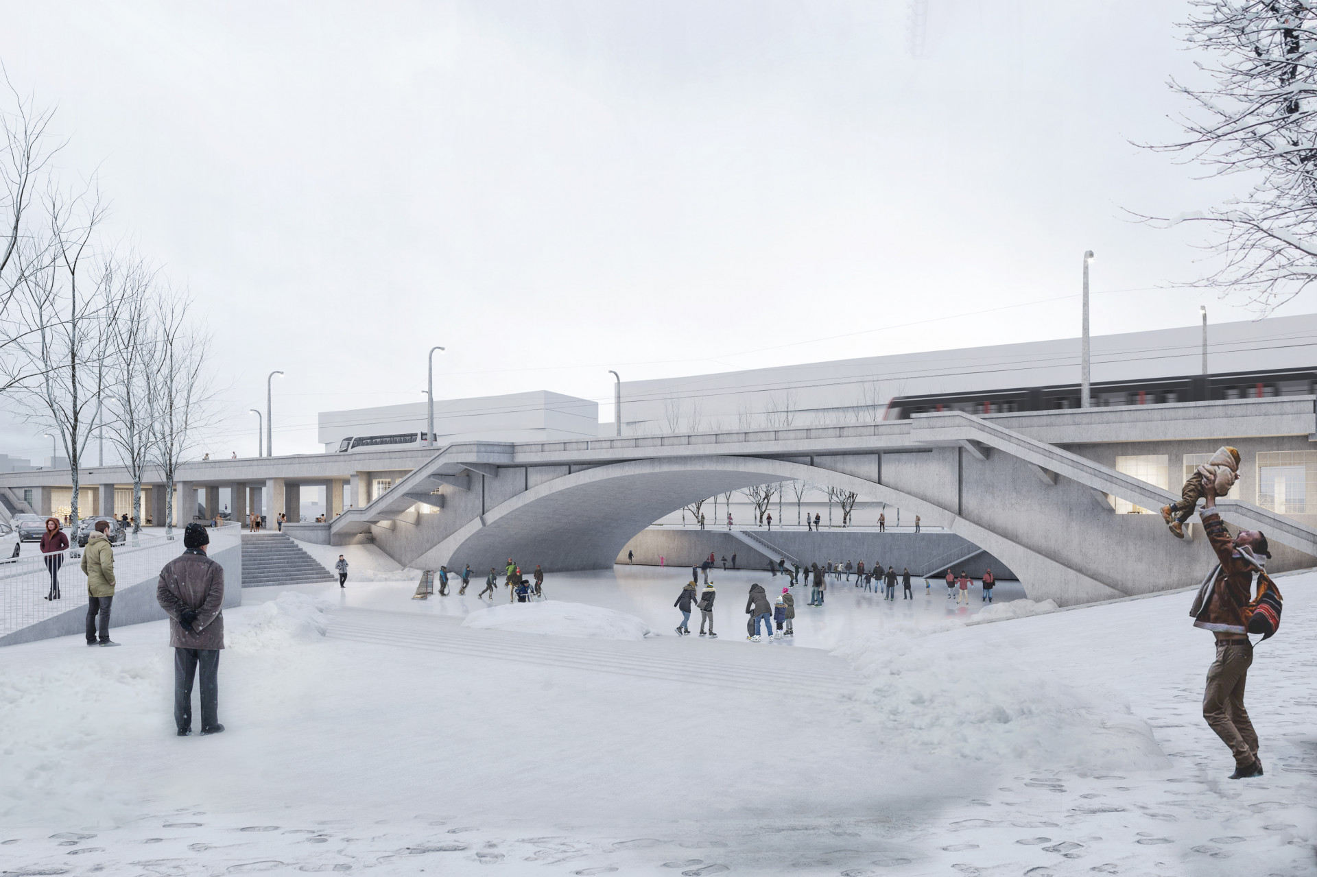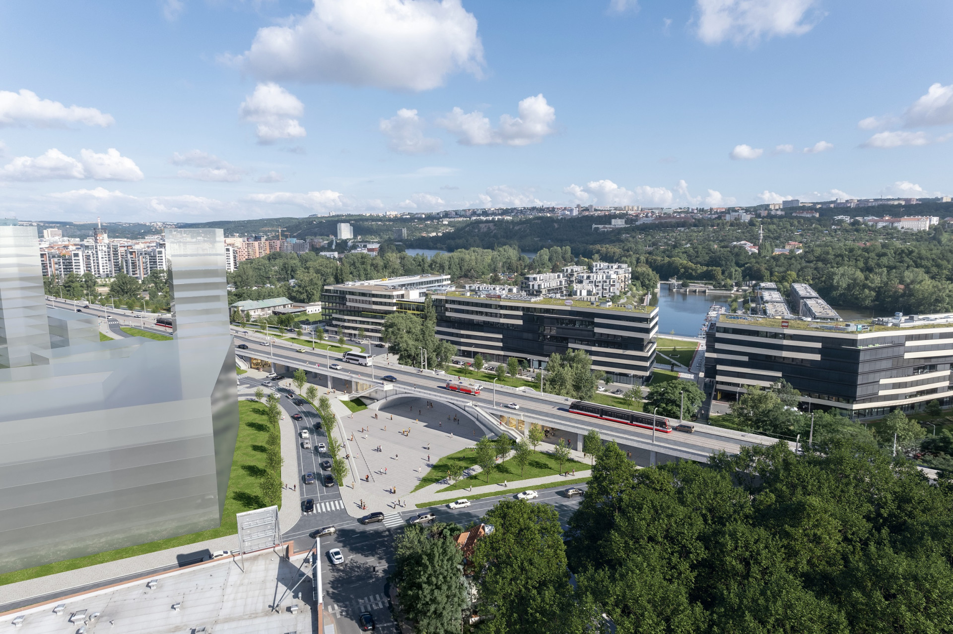 Na místech, kde mají mostní konstrukce kontakt se souší, vzniknou prostory pro občanskou vybavenost. Na Rohanském ostrově přibydou široké rampy, které zajistí bezbariérovou přístupnost. Jejich podoba se přizpůsobí architektonickému řešení slavných schodišťových uzlů, které se nacházejí na koncích obloukových konstrukcí. Most, který povede přes Rohanský ostrov, už počítá s tím, že zde v budoucnu vznikne nový městský park a proplachovací kanál. Na podobu Parku Maniny vypsal Institut plánování a rozvoje města Prahy mezinárodní soutěžní dialog. Nový proplachovací kanál ovšem nepovede v místě původního slepého ramene, oblouk tedy zůstane na souši. Vznikne pod ním nová pobytová plocha s multifunkčním využitím – může být piazzettou, skateparkem, jevištěm pro koncerty nebo ledovou plochou pro bruslení v zimě.