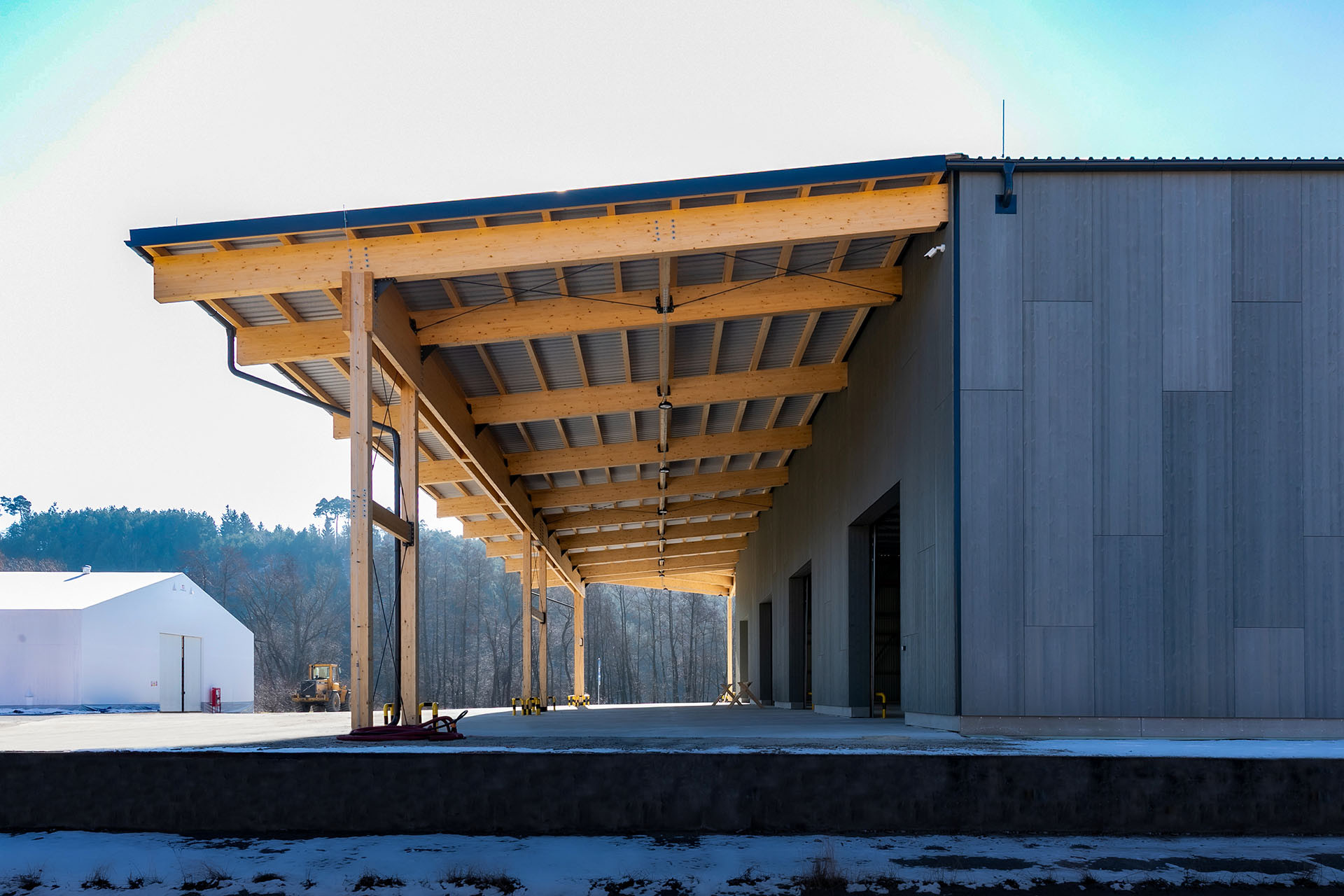 Nová hala má vnitřní konstrukci kvůli požárně bezpečnostním požadavkům ocelovou, zatímco krytý prostor pro nakládku kamionů a vnější obálka jsou ze dřeva. „Chtěli jsme halu citlivě zakomponovat do areálu v Plumlově, kde tradice zpracování dřeva sahá až k rodu Liechtensteinů. Jejich celodřevěnou pilnici z roku 1865, s neuvěřitelným 18metrovým rozponem, jsme citlivě zrekonstruovali pro skladování a dodnes tvoří historickou dominantu areálu. Také druhá hala z 80. let má dřevěnou nosnou konstrukci. Podle současné legislativy by bylo dnes nemožné postavit takové haly bez aktivní protipožární ochrany – SPRINKLER,“ vysvětluje Radek Oslizlo. „Jsme rádi, že nová hala je alespoň svým zevnějškem celodřevěná a pravděpodobně má v kategorii průmyslových hal největší dřevěnou fasádu v Česku o celkové ploše 1294 m²,“ zdůrazňuje.