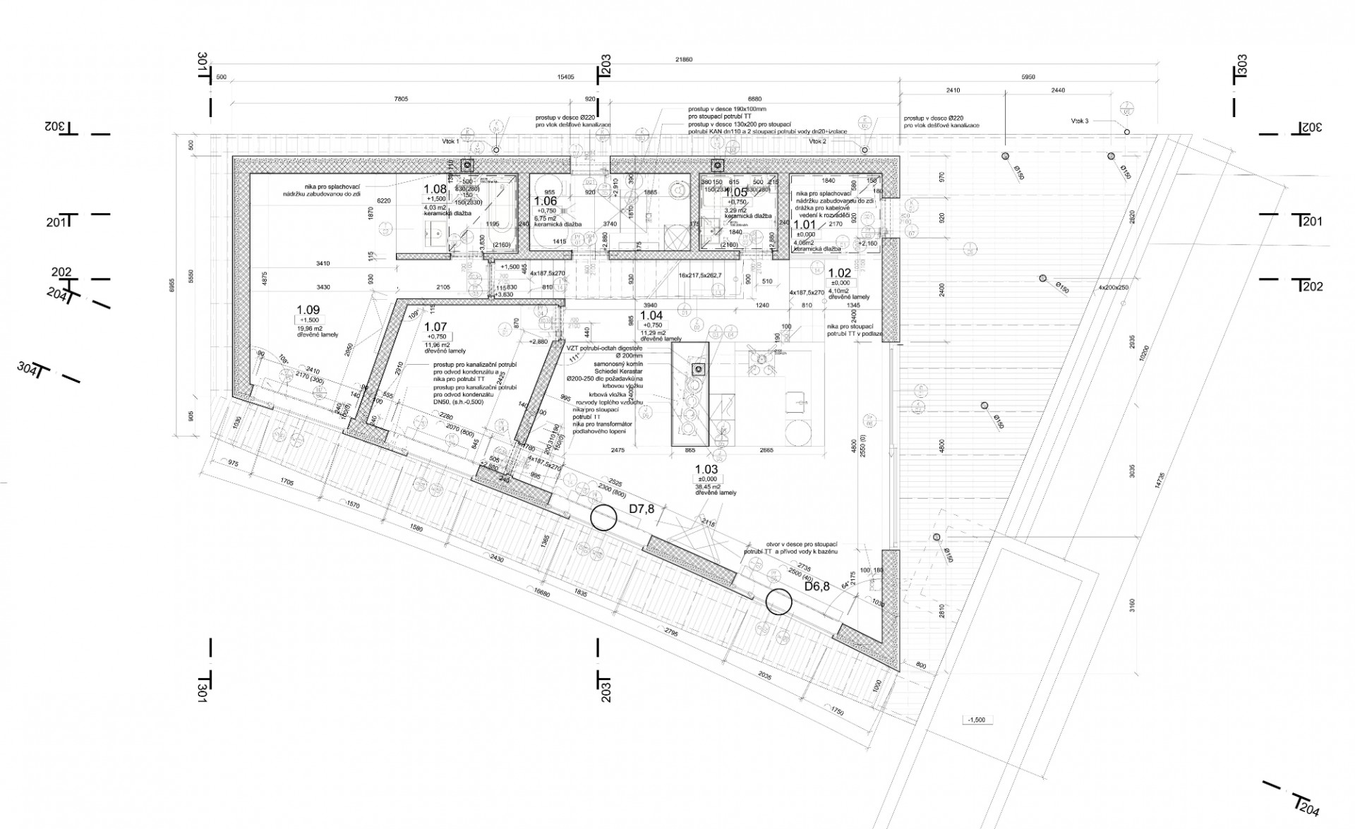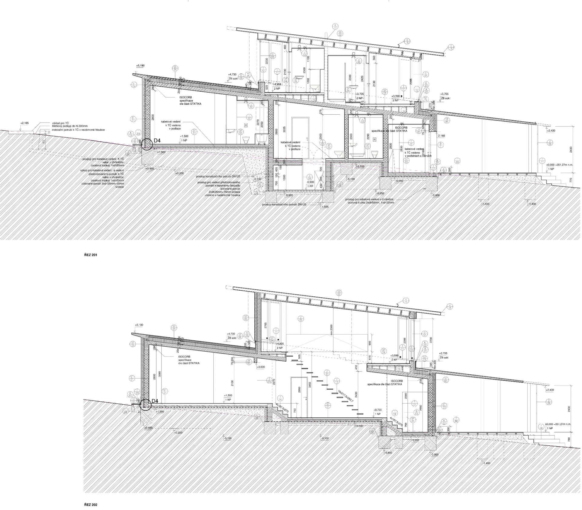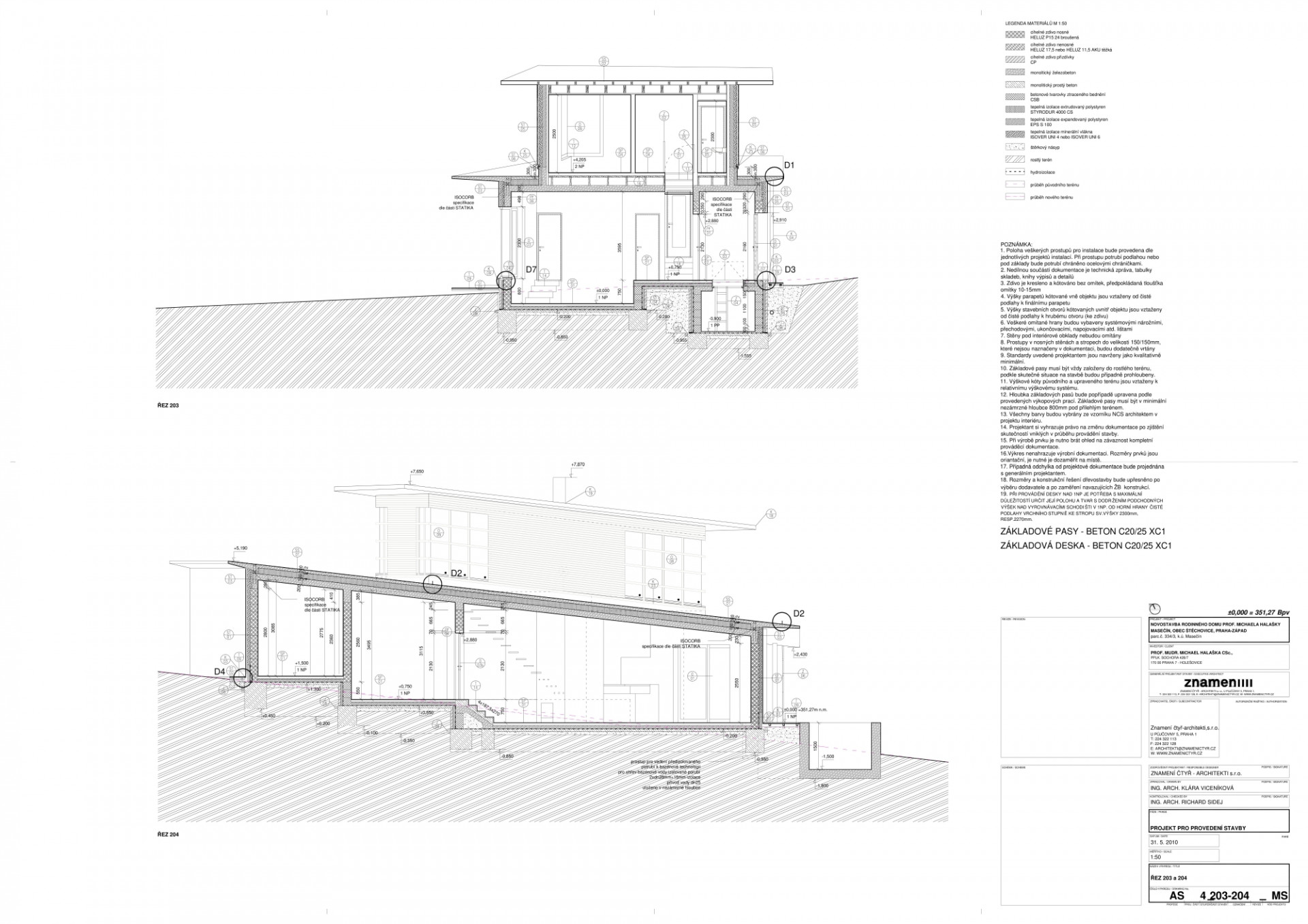 Letní dům u Štěchovic, Znamení čtyř - architekti, řez