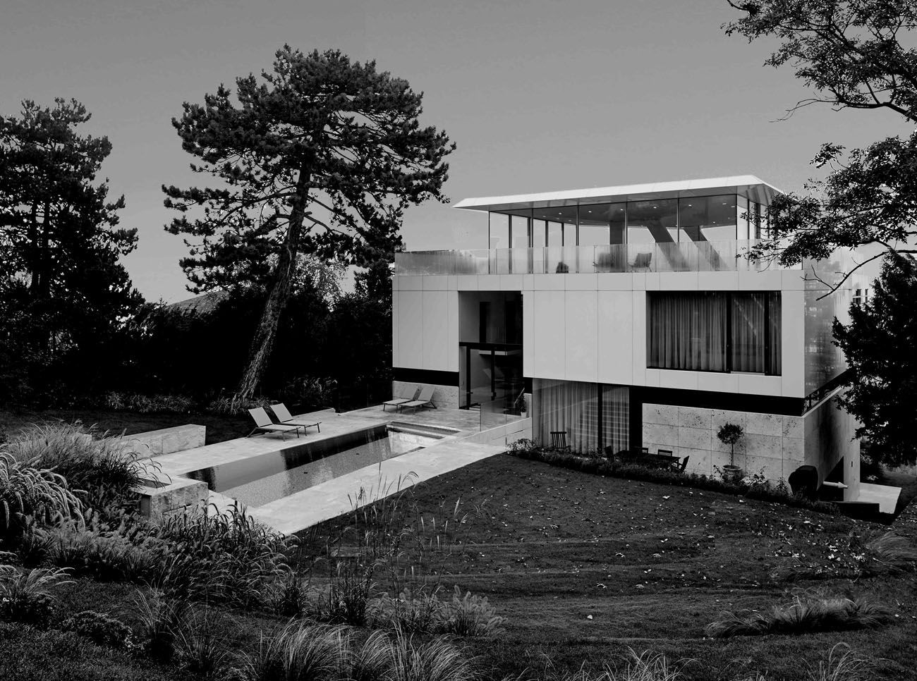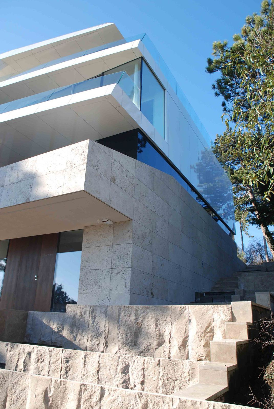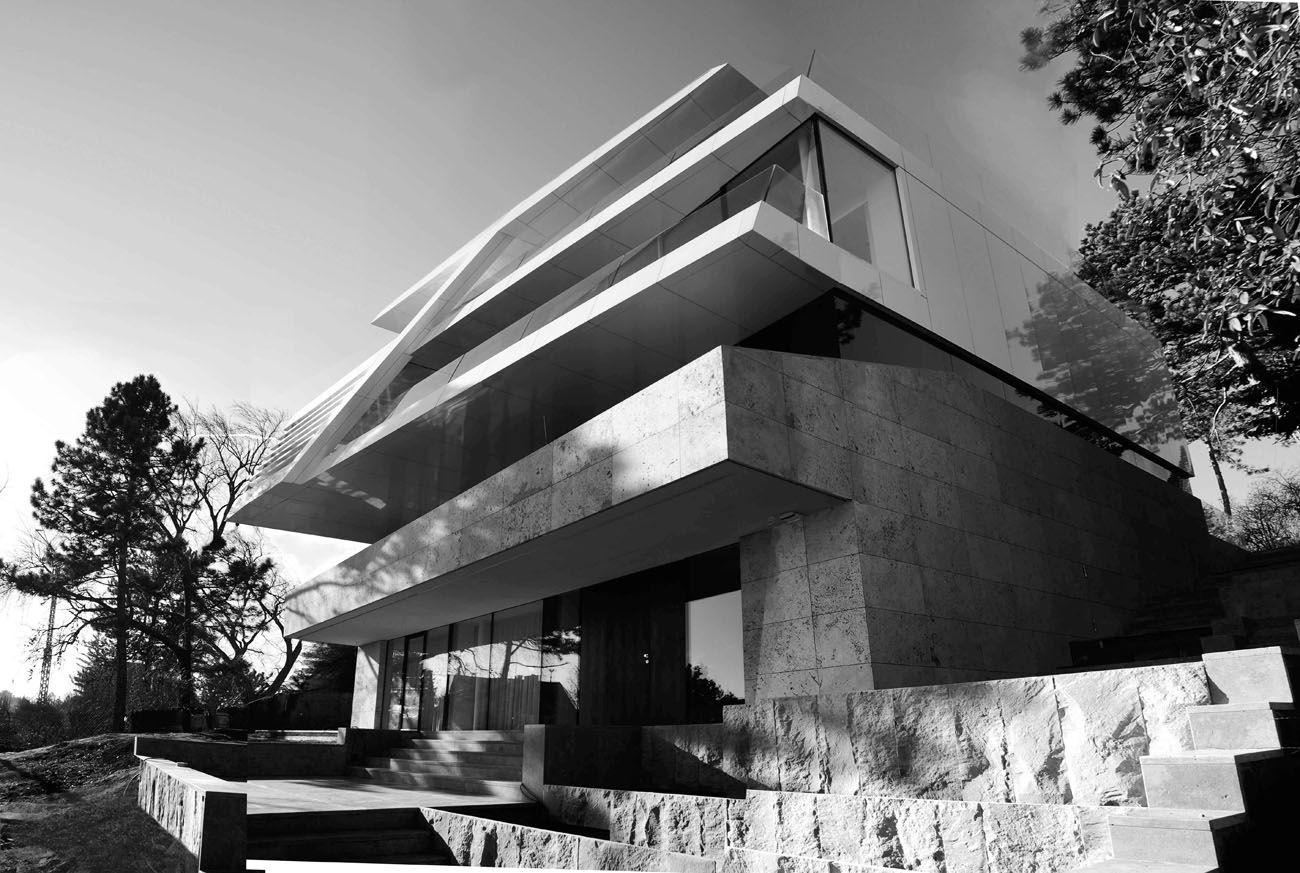 Architekti navrhli takovou podobu domu, která by odhalila jeho „osobnost“ a jejíž funkce se jasně odvozují od rozdílného členění vnitřních a vnějších prostor. Vila už zdáli odhaluje, jaké jsou její jednotlivé obytné funkce, a mezi pohledem zvnějšku a soukromím tak vzniká jisté napětí. Hmotnost, průhlednost a hra s formami jsou budovány postupně a ve vrstvách. „Chtěli jsme dát nový život poměrně velkému domu i jeho stávající vertikalitě. Sokl jsme zdůraznili přírodním kamenem, ale s tím jak se dům zvedá do výše, roste i jeho průhlednost,“ říká jeden z tvůrců přestavby Rames Najjar. Vrstva ložnic, například, odděluje přízemí od obýváku s vyhlídkou na vrcholu a zvenčí se projevuje jako lehce zbarvený skleněný pás.