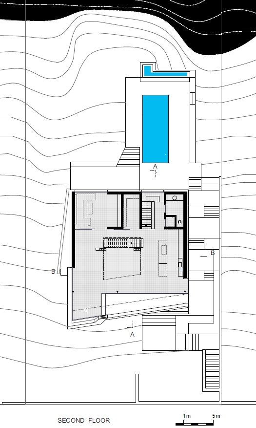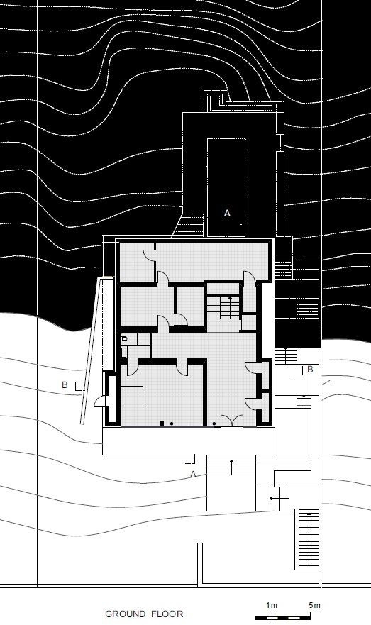 Role výhledu a výhledů hrála při přestavbě tohoto domu ve svahu zásadní roli. Původní stavba připomínala vilu jen málo a kvůli četným rozšířením a přestavbám už postrádala jakékoliv prostorové či architektonické kvality. Poslední, střešní přístavba byla navíc předimenzovaná a kvůli celkovému technickému stavu budovy byla v rámci nové přestavby zcela odstraněna.
