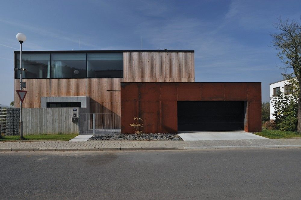 Dům je navržen v proporcích reflektujících okolní zástavbu. Venkovní i vnitřní materiálové řešení je podřízeno přírodním materiálům, z nichž se nejvíce uplatňují obklady z cedru a cortenu – vnější fasády. V interiéru se nejvíce uplatňuje dub, ocelový plech a gletované štukové omítky. Okenní a dveřní otvory jsou navrženy do hliníkových profilů.