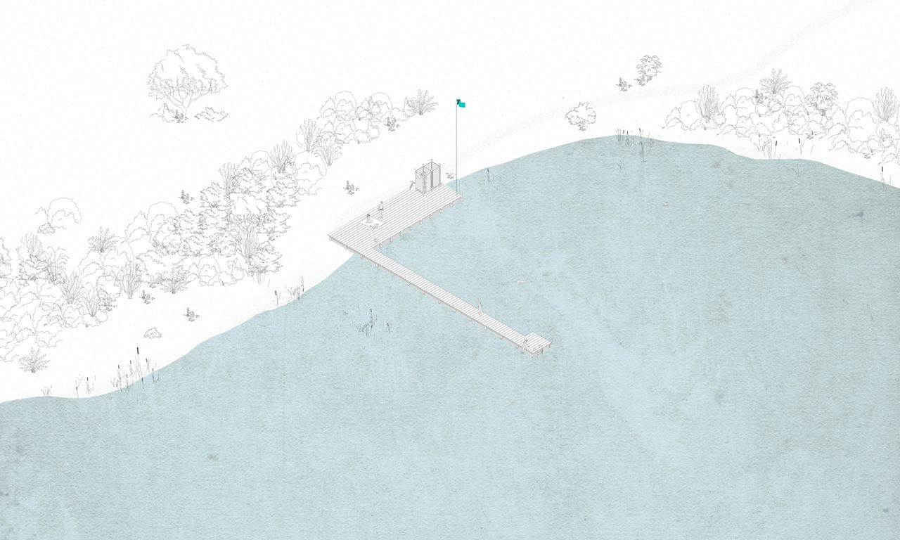 Vu Dinh Quang, Daniela Míková a Ondřej Novák, Malá architektura pro Velký rybník, molo s převlékárnami v lomu - foto